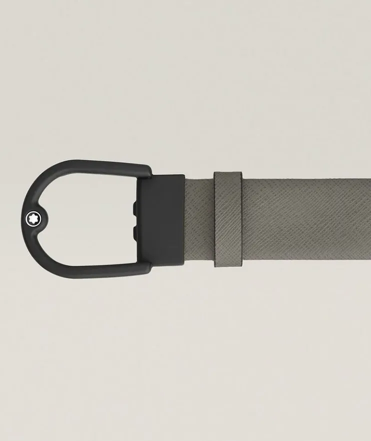 - This elegant leather belt is presented with a logo detail at the buckle to elevate any ensemble.