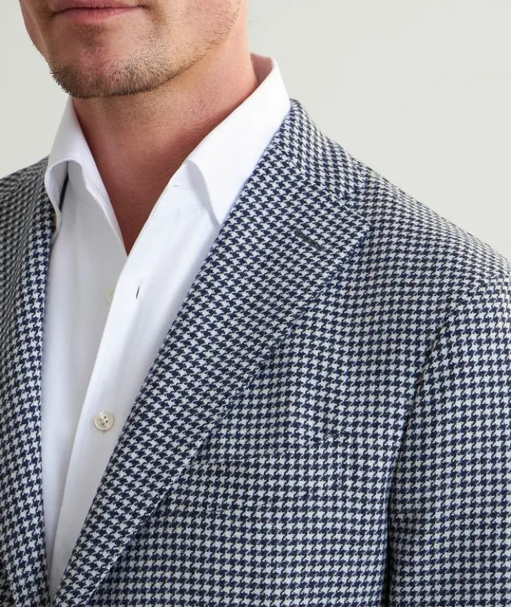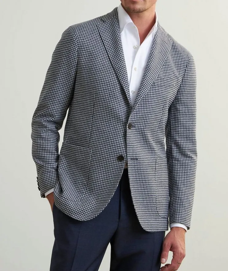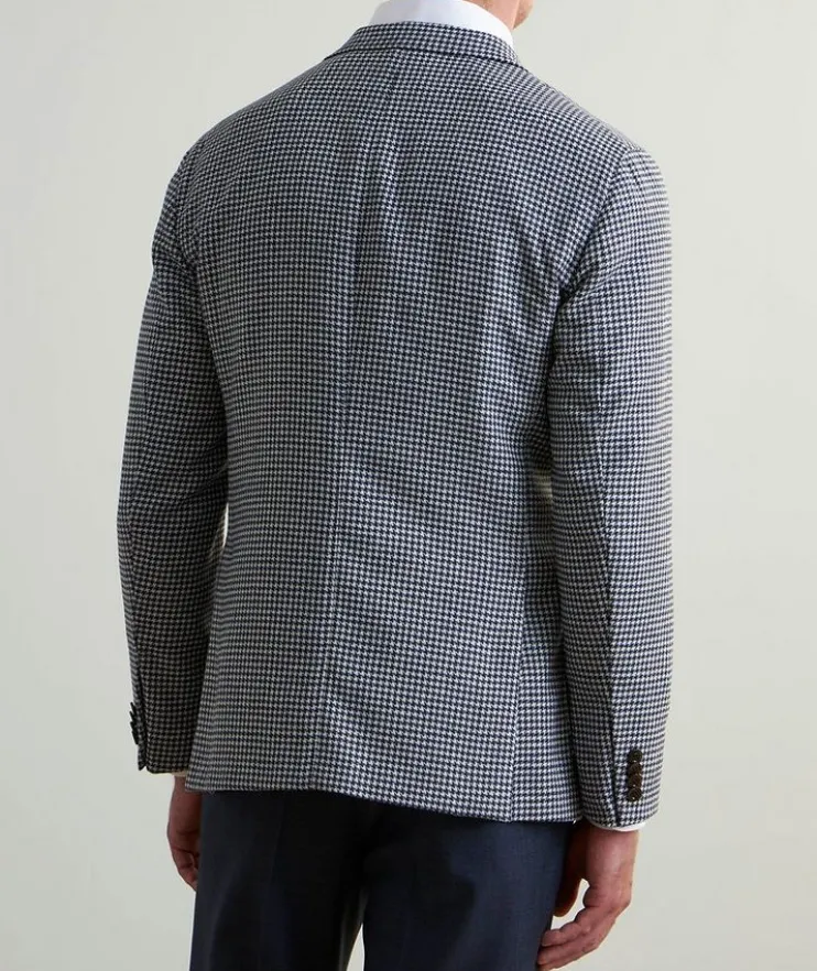 Made from high-performance wool-blend that has been treated with an artisanal garment-dyeing technique, this soft tailored jacket with classic three-button silhouette and houndstooth finish is designed to suit a dynamic lifestyle – perfect from work to weekend events.