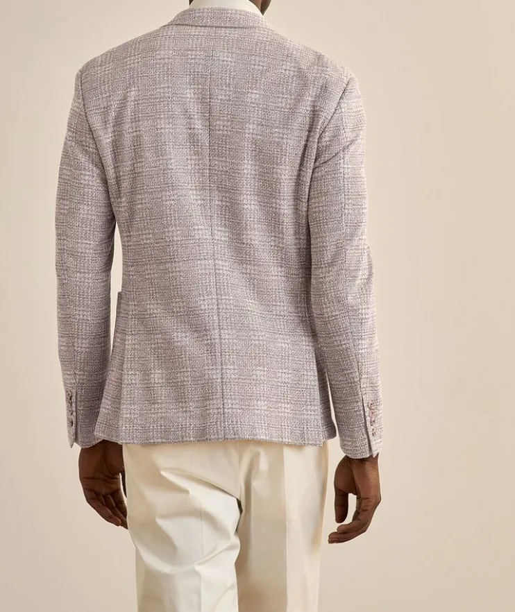 - This single-breasted sport jacket is crafted from a soft cotton blend with plenty of stretch for added comfort, and is finished in a mélange check pattern with floral pin detail.