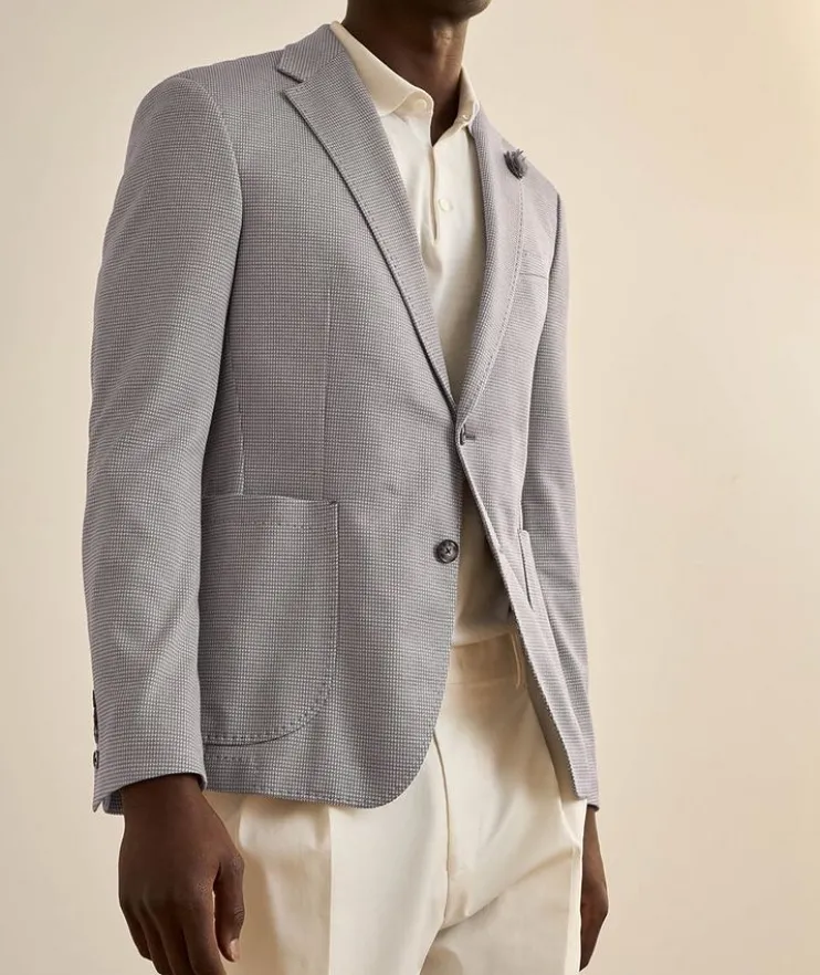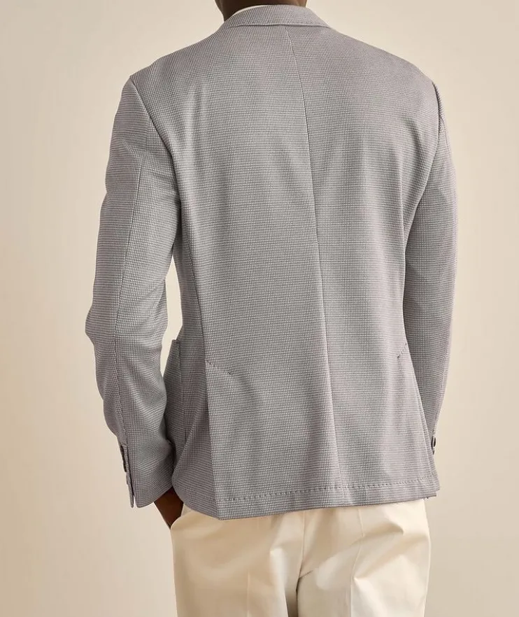 - Cut in an unstructured single-breasted silhouette, this slim-fit sport jacket features a mini-houndstooth check pattern with floral pin detail and is perfect in casual and formal settings.