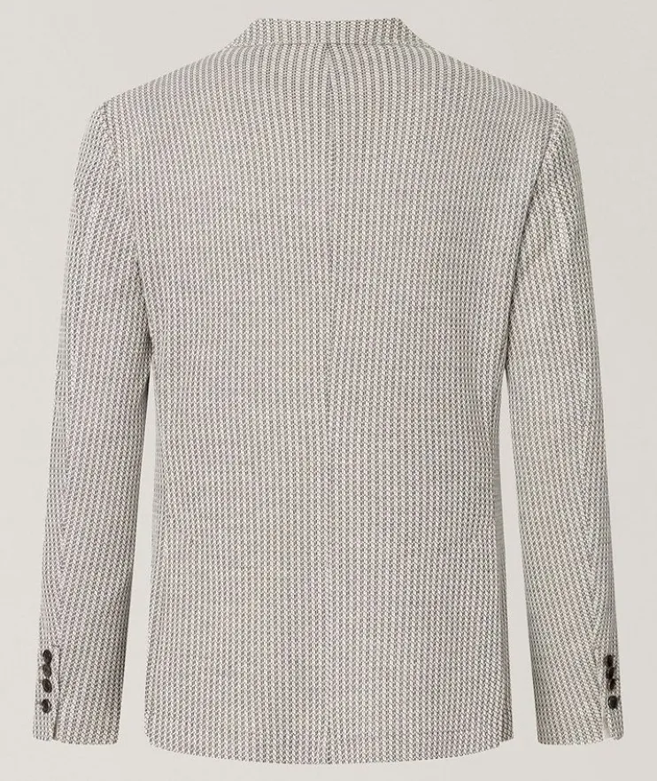 - Expertly crafted from a wool blend with a woven neat pattern, this versatile sport jacket elevates any ensemble. Decorated with buttons and a floral pin at the lapel.