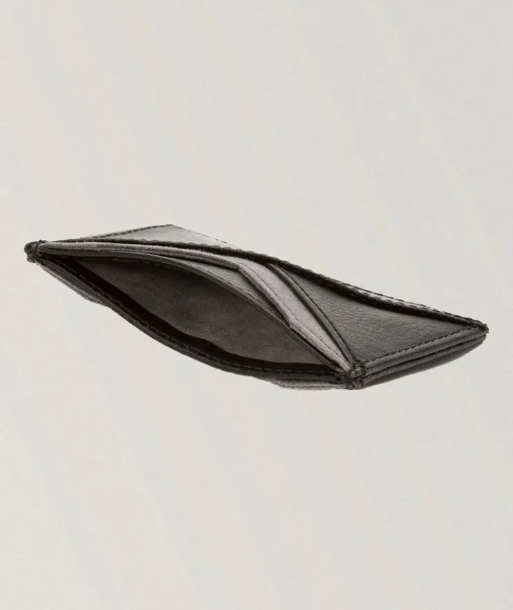 - Stylish and function, this pebbled leather card wallet effortlessly organizes your cards and cash in a thin, sleek design.