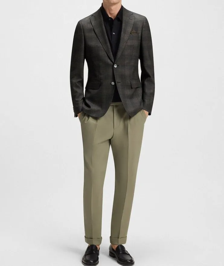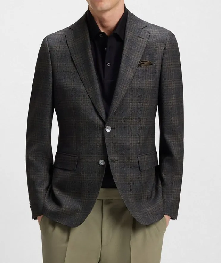 - A fresh spin on a wardrobe classic, this single-breasted sport jacket is an example of timeless elegance. Meticulously crafted from virgin wool with a checked motif, this tailored jacket offers a slim silhouette for a refined and sophisticated appearance.