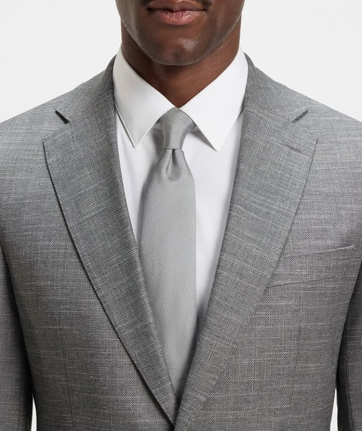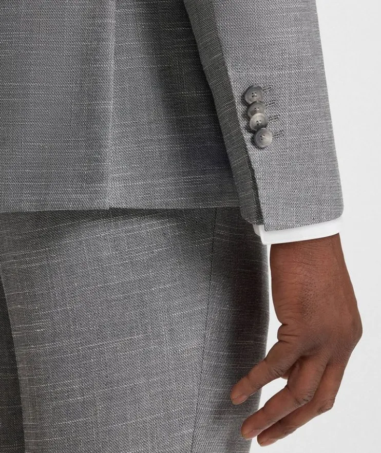 - Make a formal statement with this suit jacket by BOSS Menswear. Tailored to a slim fit in stretch fabric blended with wool, cotton and linen. The sleeves of this garment are unfinished. Alterations are needed for sleeve length adjustment and button attachment.