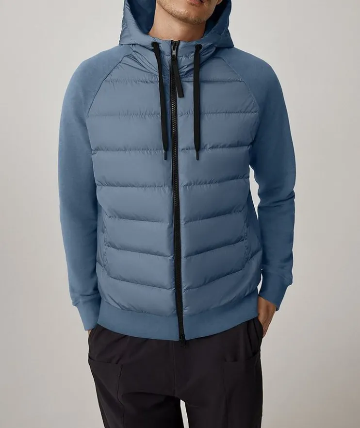 - Featuring the brand’s HyBridge® fabric, this Huron Hooded Sweater combines softness and breathability for a modern look in an uncompromisingly functional hoody. The lightweight piece adds warmth where you need it most with its down filled front and jersey cotton body. Articulated rib-knit cuffs and hem lock in heat and the adjustable drawcord hood protects your face against the elements.
