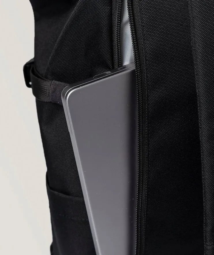 - Top zipper and rolltop closure & exterior zip pocket