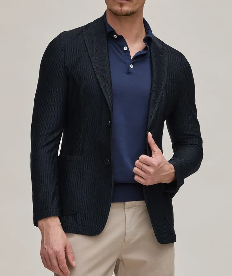 - This Giorgio Armani design typifies the house’s elegant European sensibility and soft-shouldered tailoring. The comfortably cut, unstructured sports jacket is constructed in Italy from a mesh-like stretch-blend that’s ideal for year-round wearing. It’s an endlessly versatile and stylish suiting option from the brand’s exclusive Icon selection must-have garments for every wardrobe.