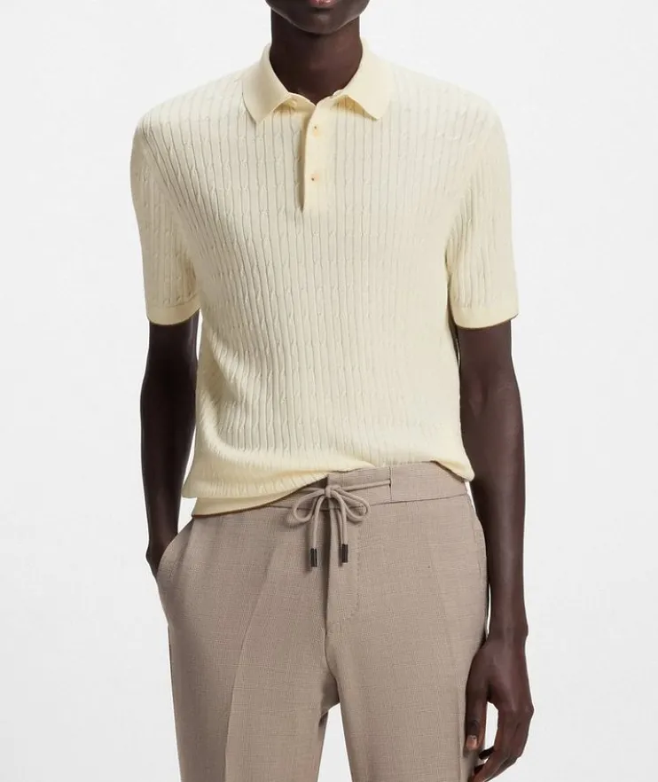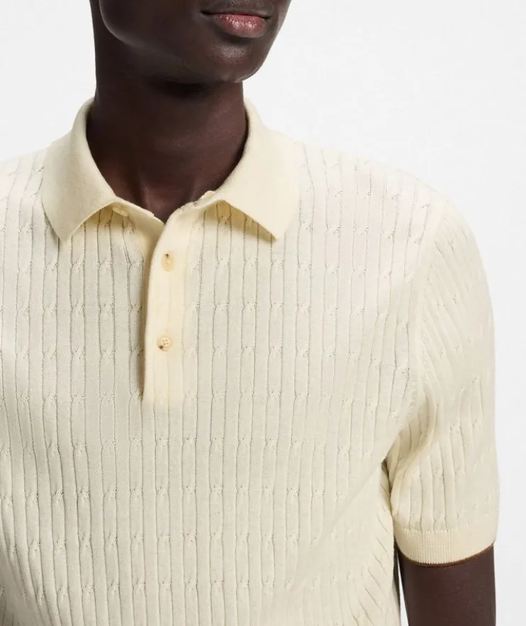 - In luxuriously soft silk and cotton, this refined polo features a timeless cable-knit design with contrast tipping and is perfect for traversing the seasons. Cut in a classic straight fit, this piece fits comfortably against the body for a sophisticated look.