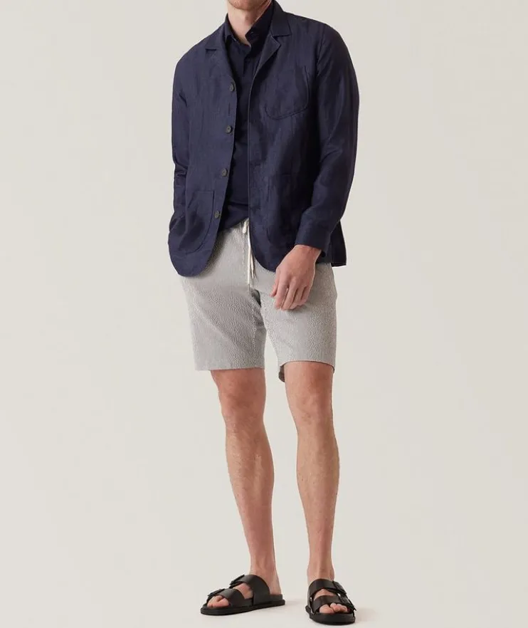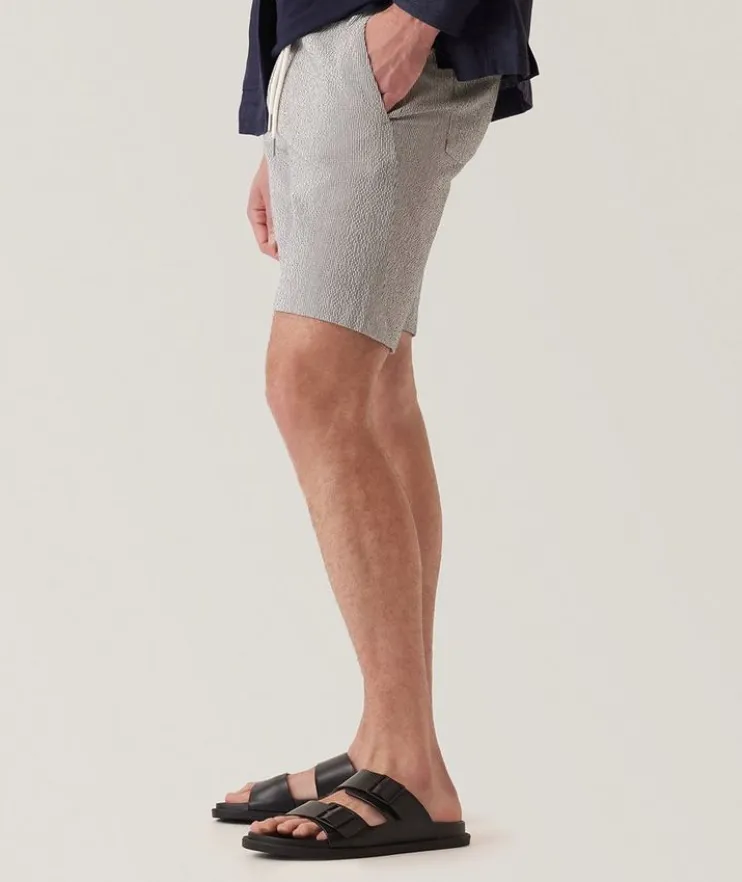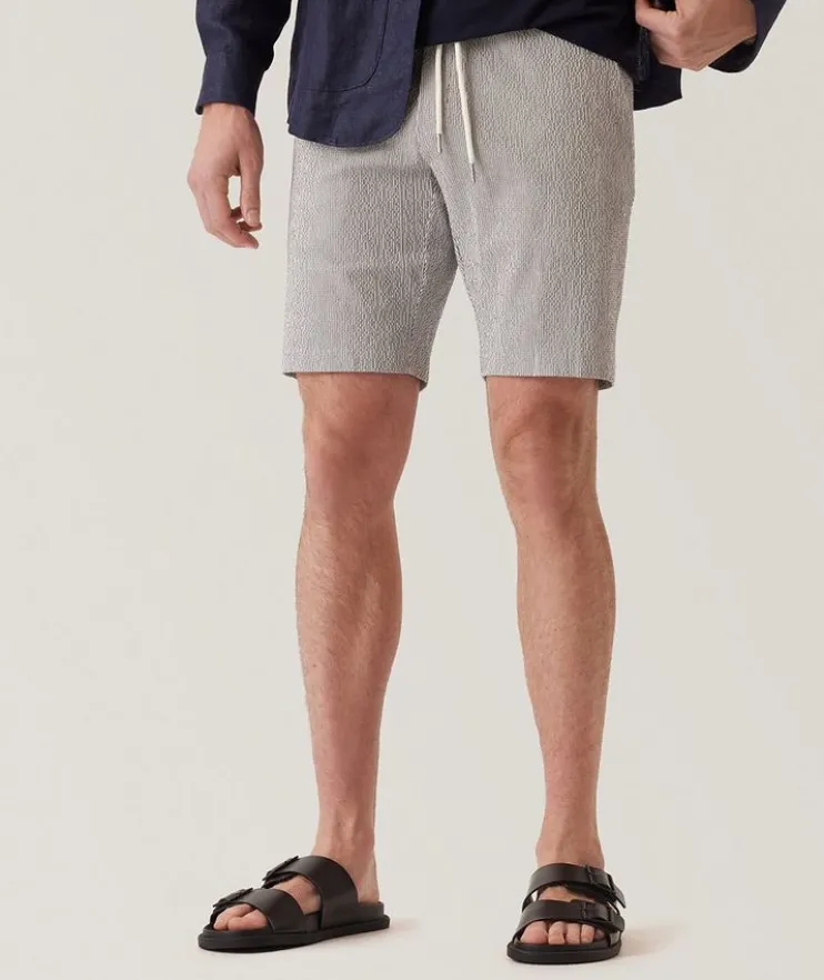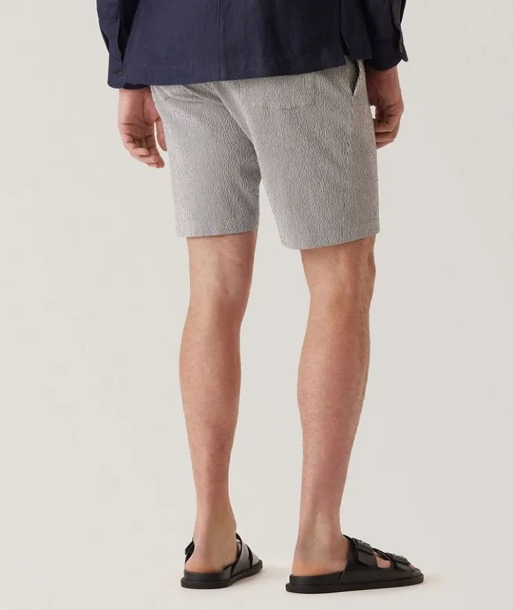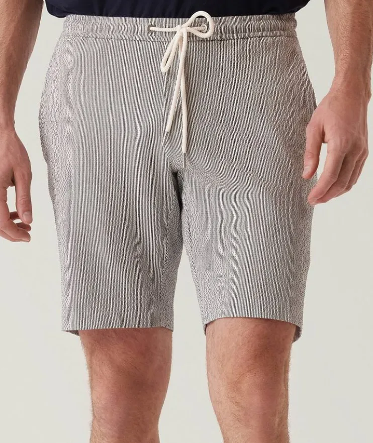 - Designed for versatility with a lightweight feel and subtle stretch, these striped shorts are finished in breathable textured seersucker for effortless sophistication and all-day comfort.