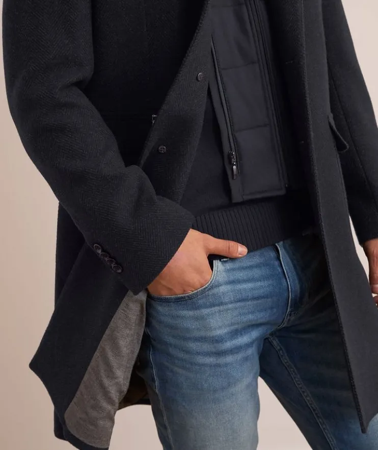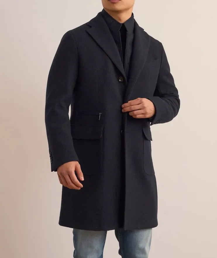 - This coat has been crafted in a slim fit, designed to sit close against the body.