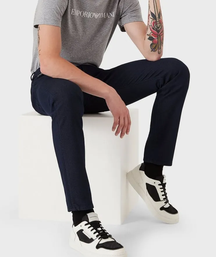 - Offered in a variety of fits and colours, Emporio Armani’s J06 jeans are defined by clean lines that can be worn during any season. Crafted from yarn dyed Armure, the rich fabric elevates the piece from a casual jean to a practical five-pocket trouser.