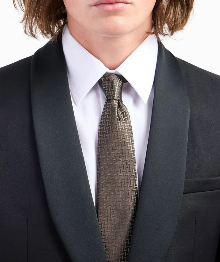 - Silk and viscose tie with the iconic chevron motif in a jacquard weave. The tie has always been a symbol of male elegance. As an accessory, it is as essential for modern men in business as it is for special occasions and ceremonies.