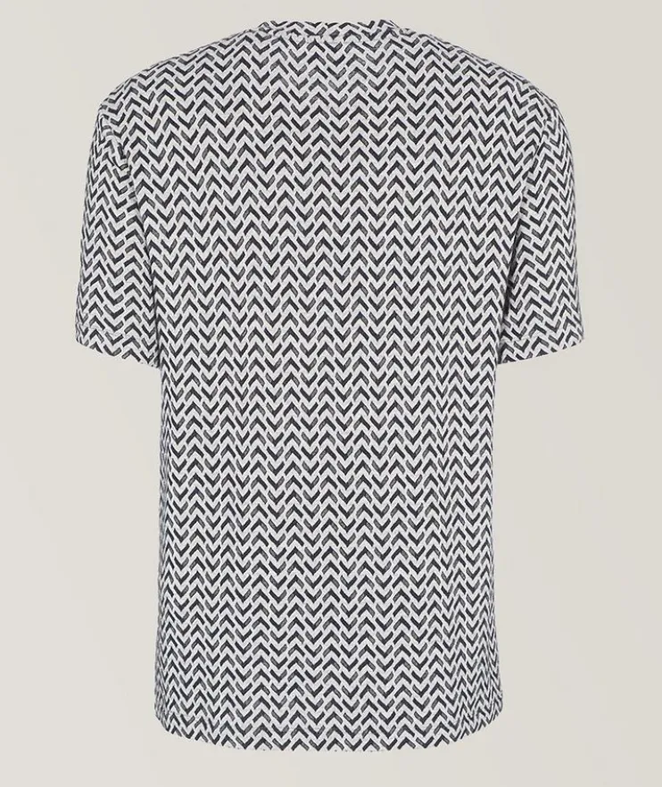- This viscose-jersey T-shirt by Giorgio Armani is embellished with the brand’s iconic, jacquard chevron motif. It expertly adds a versatile, sophisticated allure to a wide array of casual looks. Pair the tee with jeans and loafers for a modern summer look.