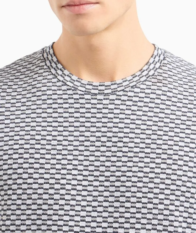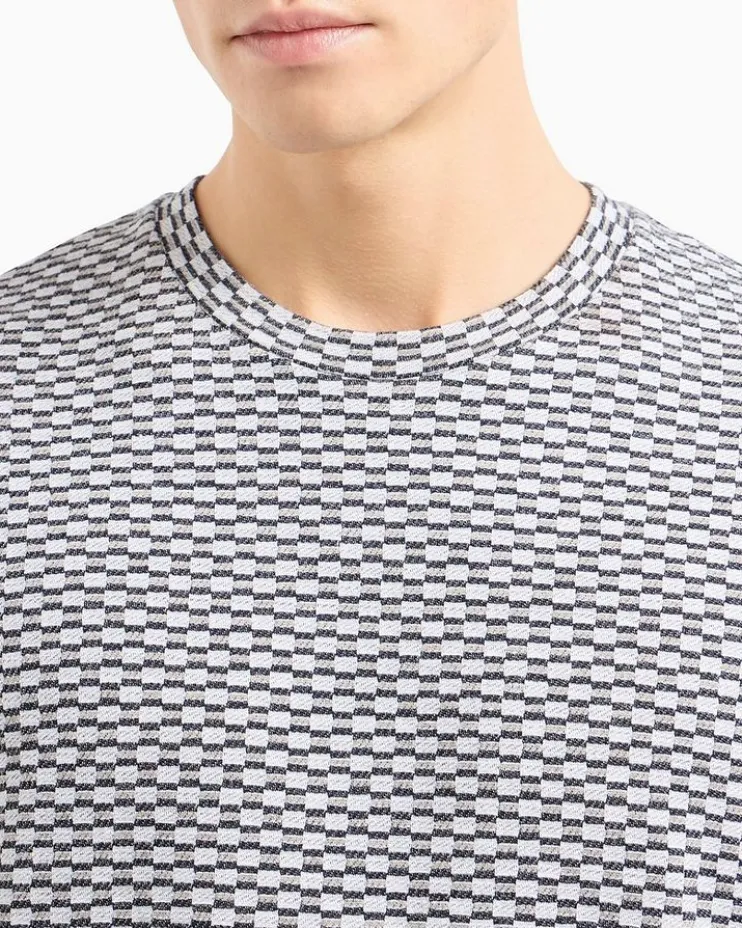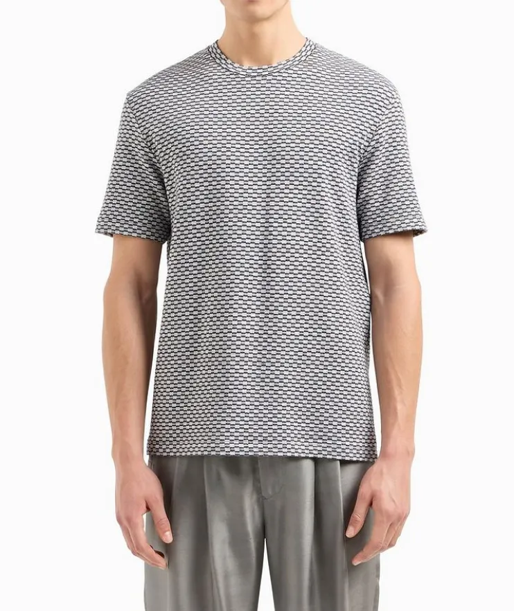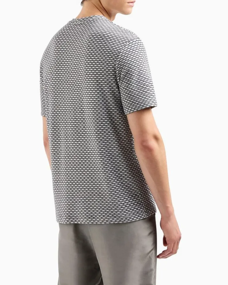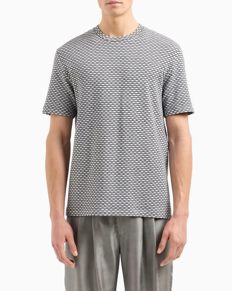 - Cut from an extremely soft viscose blend, this laidback T-shirt boasts a classic crew neckline with a geometric jacquard finish for a contemporary aesthetic.