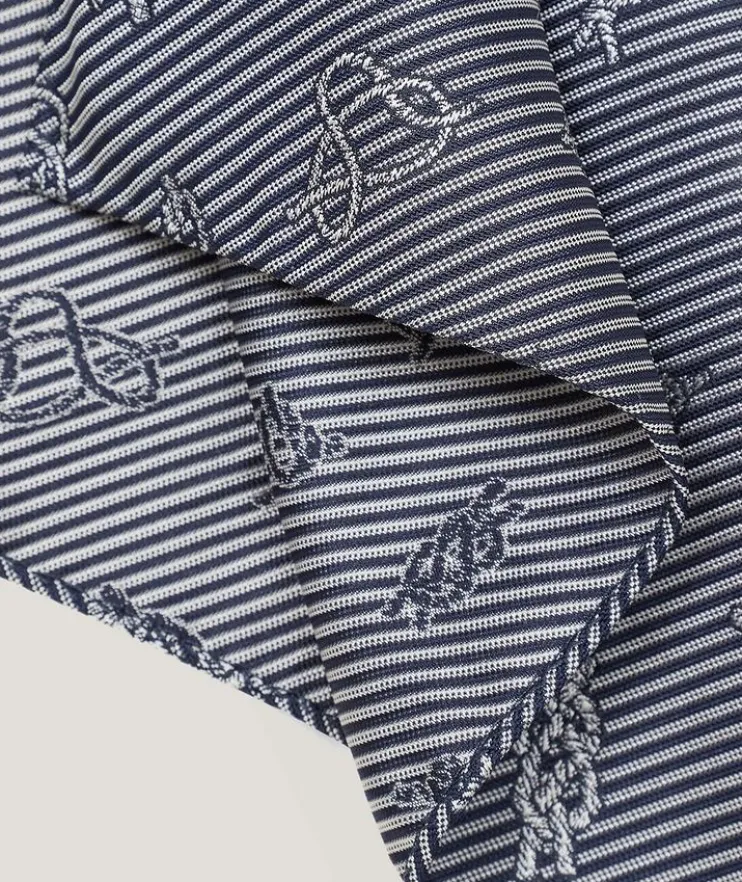 - Pure silk pocket square with jacquard weave depicting the collection’s nautical knot motif on a striped background. Add an understated, elegant touch to your jacket: the pocket square. The ultimate men’s accessory, a decorative detail that defines a true man of style.