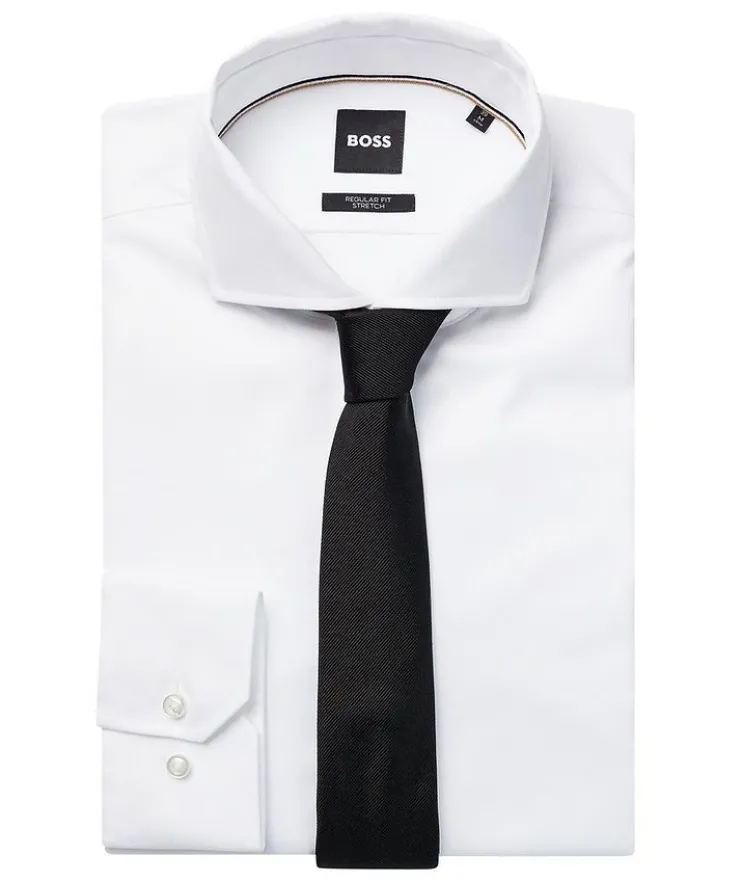- Add a finishing touch to formal looks with this contemporary Jacquard tie from BOSS. Made in Italy from pure silk, the elegant tie is decorated in a subtle jacquard pattern for adaptive styling, making it an ideal choice for a classic business look.