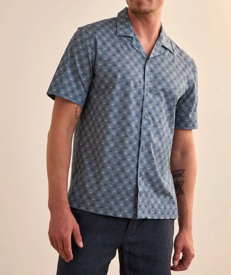 - Perfect for wearing tucked or untucked, this camp shirt is presented with an allover leaf print in the brand’s OoohCotton®, a quick-dry, high performance and breathable cotton-blend that’s wrinkle-resistant and features 8-way stretch so you can look and feel your best on every occasion.