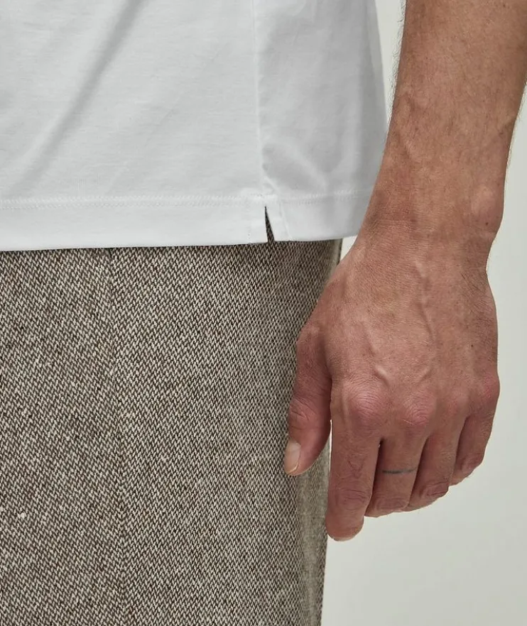 - Brunello Cucinelli’s elevated design aesthetic evident in their tailored pieces translates into this laid-back cotton t-shirt. It is cut in a flattering slim fit that allows for all-day comfortable wear. Team the everyday essential with everything from jeans to chinos.