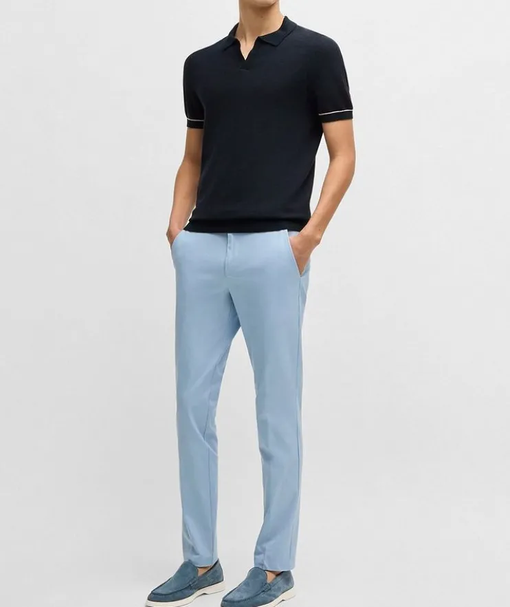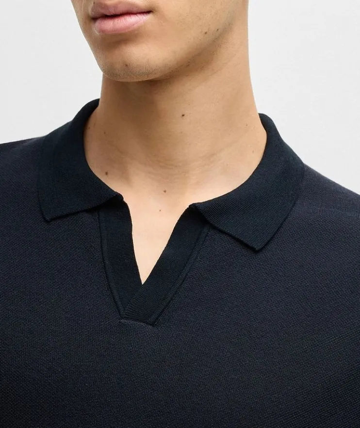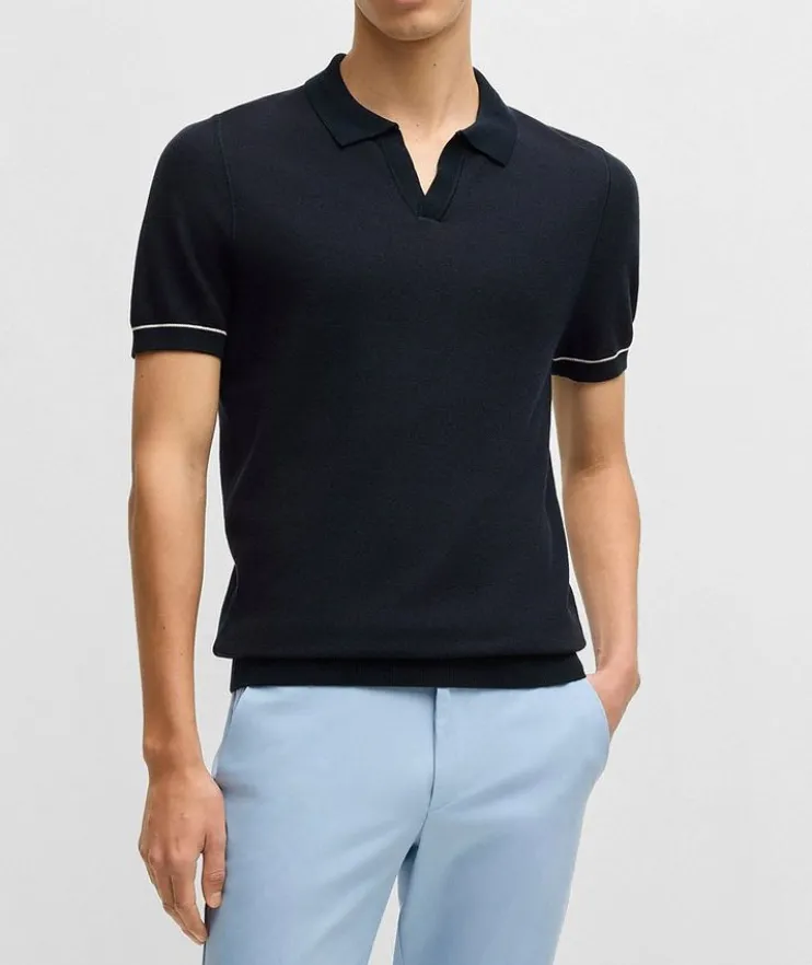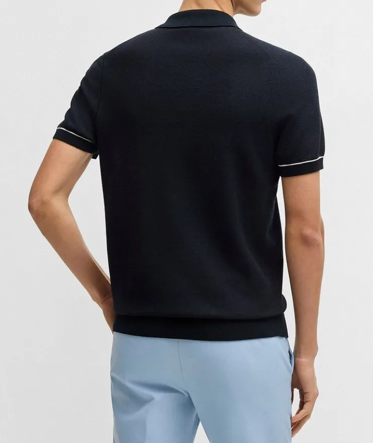 - In a casual fit with a breathable piqué structure, this polo-style sweater is detailed with solid trims. A versatile style that can be dressed up or down.