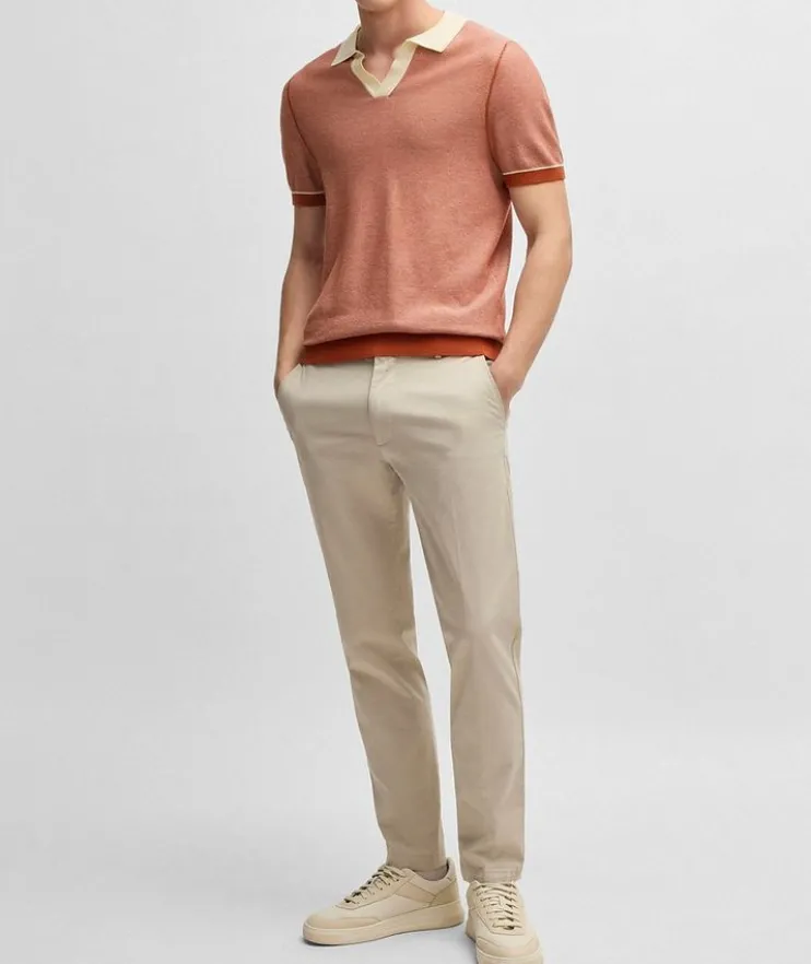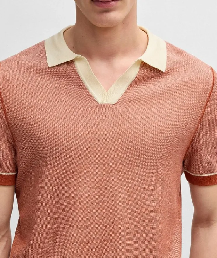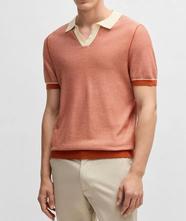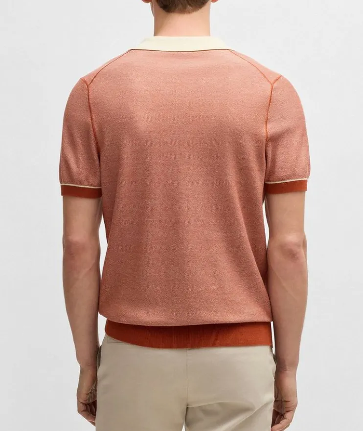 - In a casual fit with a breathable piqué structure, this polo-style sweater is detailed with solid trims. A versatile style that can be dressed up or down.