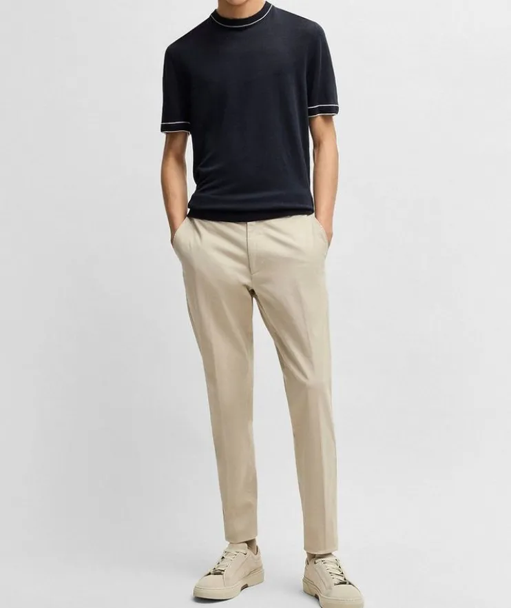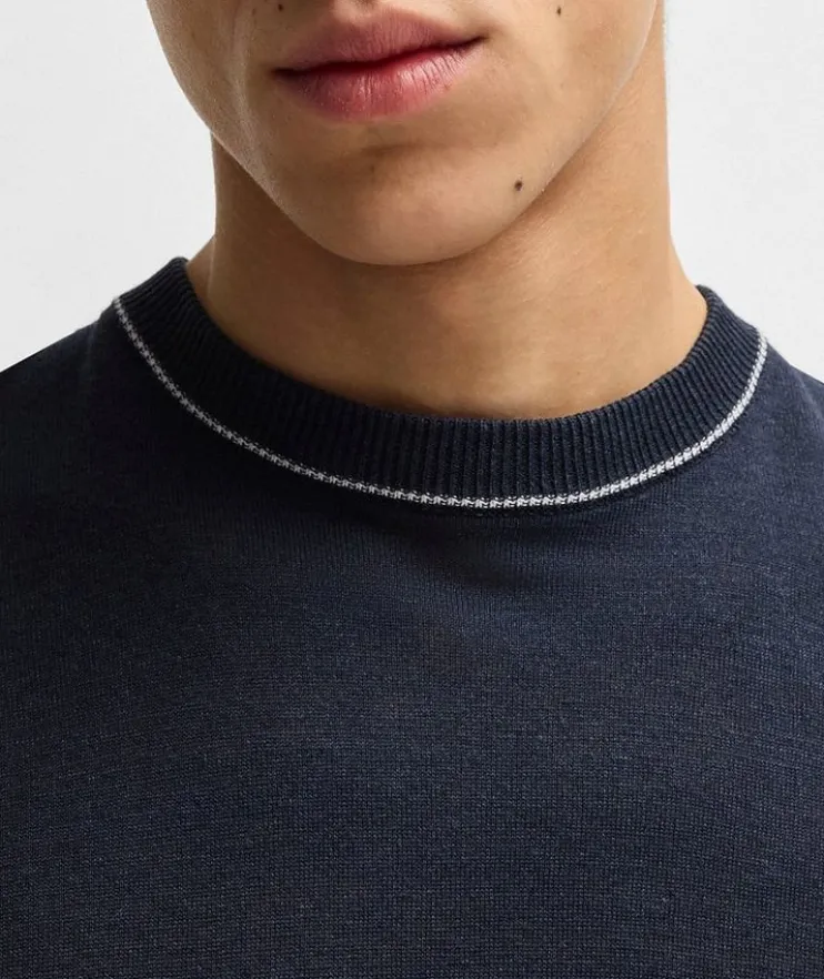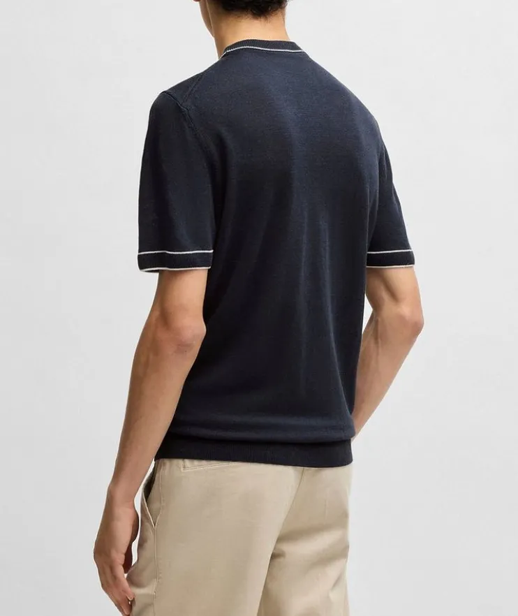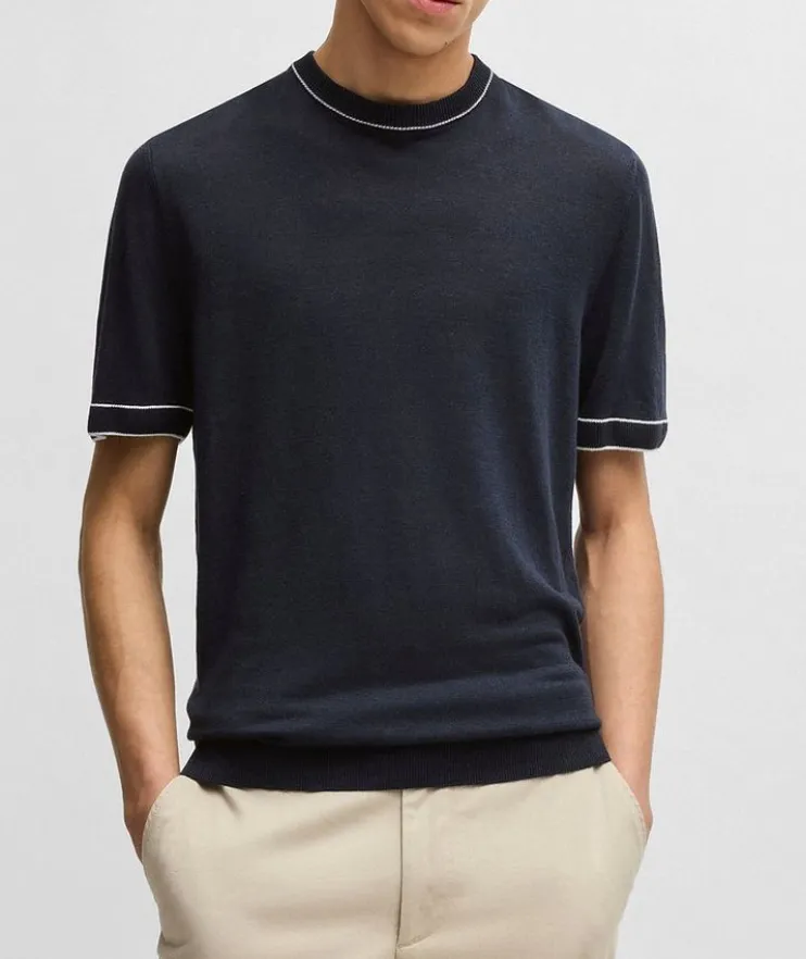 - A versatile option for everyday wear, this knit sweater is crafted fresh, summery blend of linen and viscose. Tipping details at the collar and cuffs add a sporty touch to finish off the look.