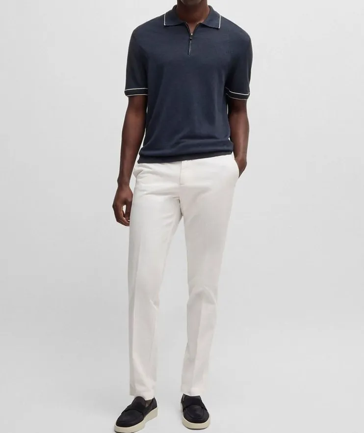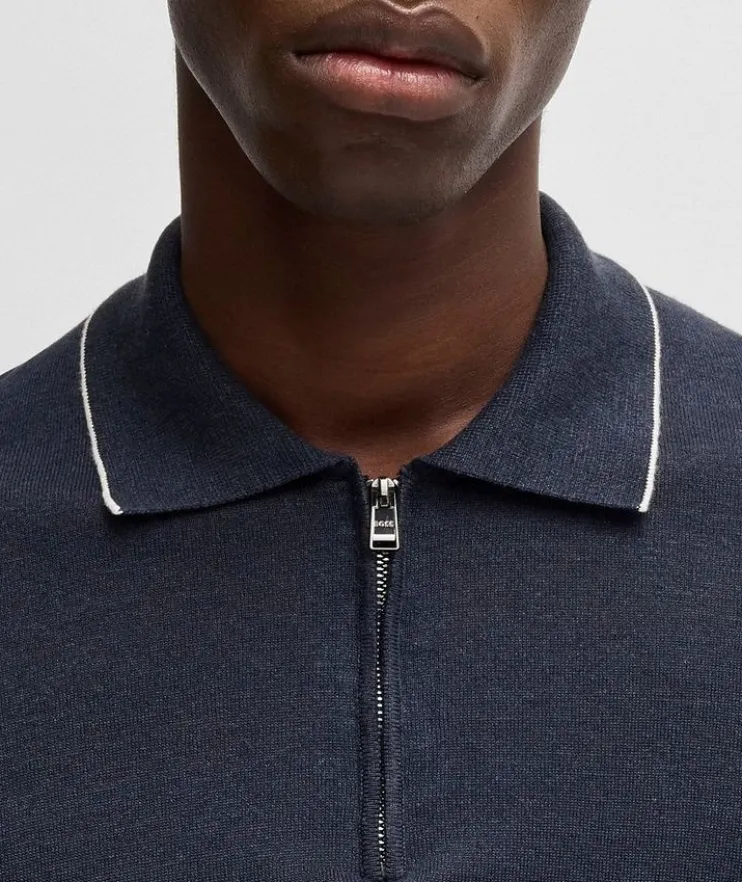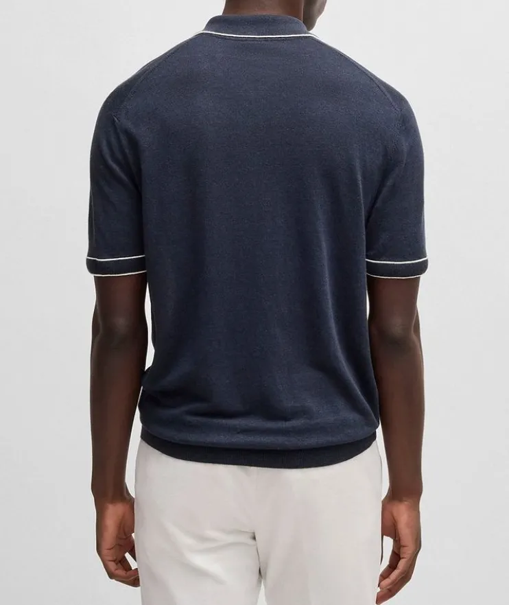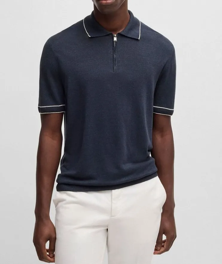 - A versatile layering piece for everyday wear, this knit polo is crafted fresh, summery blend of linen and viscose. A zipper placket and tipping details at the collar and cuffs add a sporty touch to finish off the look.