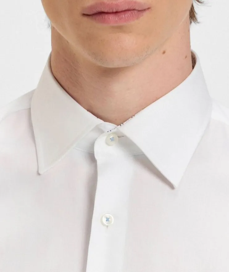 - Constructed in a flattering straight fit, this shirt offers style and comfort. Made from cotton woven in Austria with an easy-iron finish.