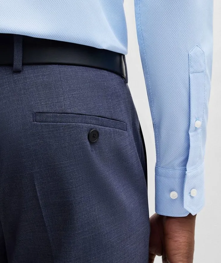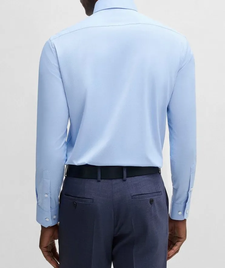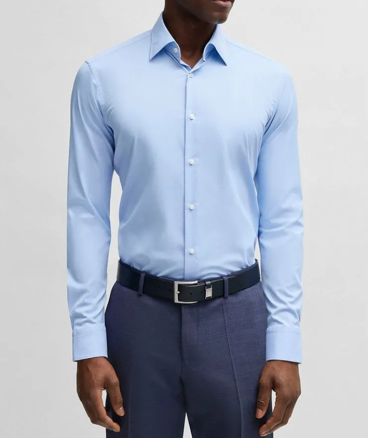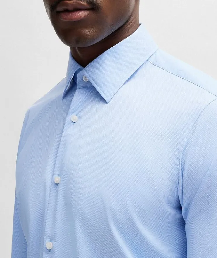 - Tailored to a classic straight fit, this classic shirt adds depth with its detailed structure. Blended with generous stretch for all-day comfort.