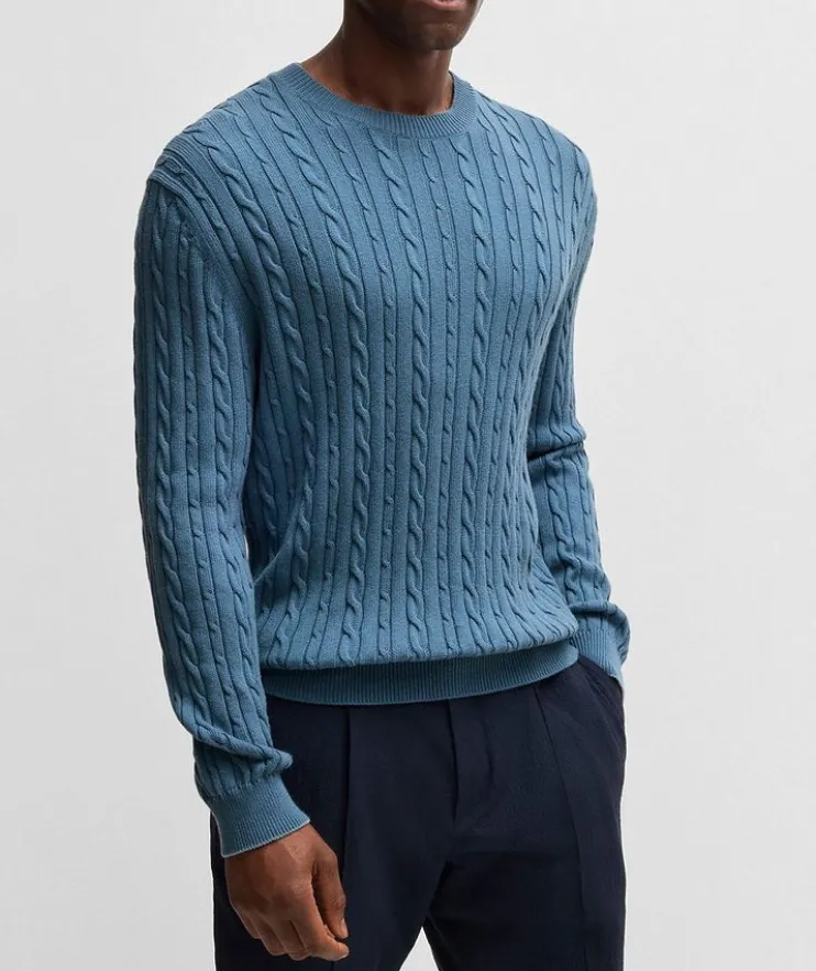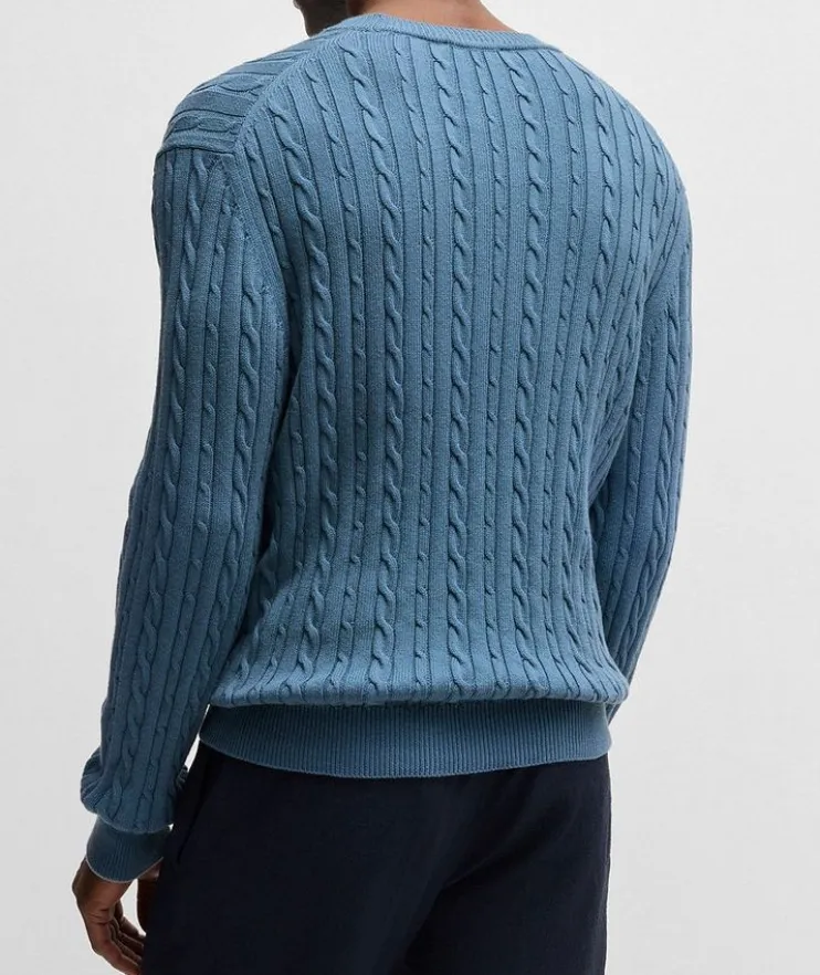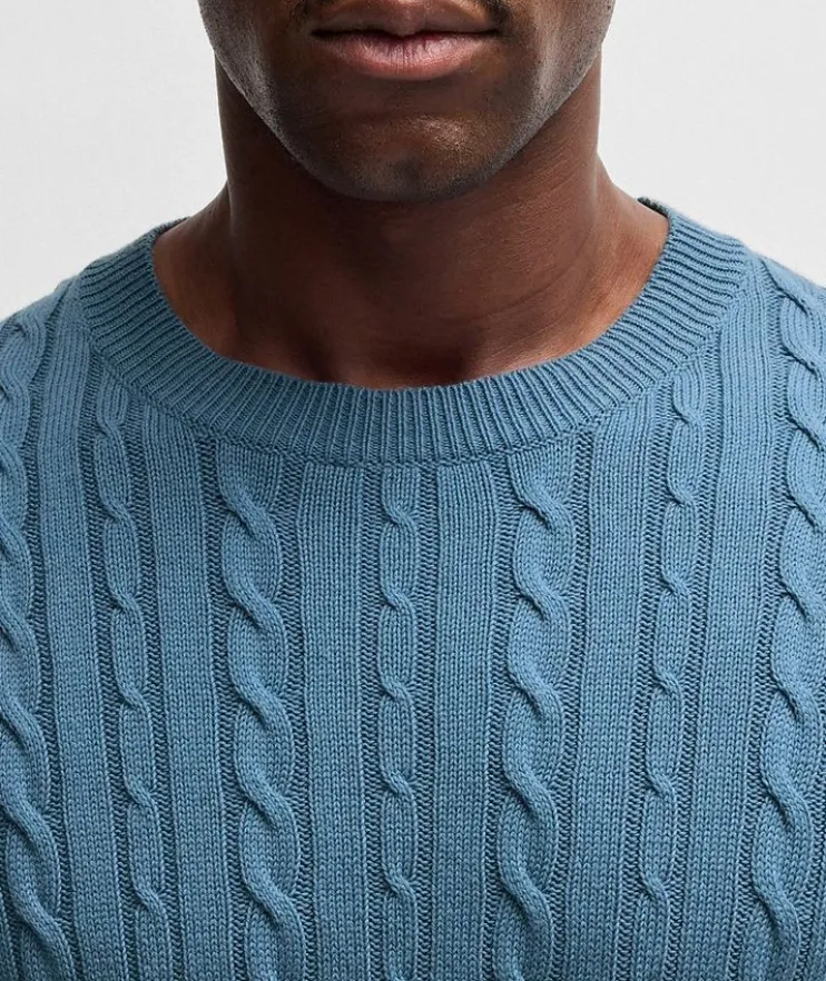 - Crafted from a soft blend of cotton and cashmere in a relaxed fit for easy layering, this cable-knit sweater makes for a versatile styling piece year round.