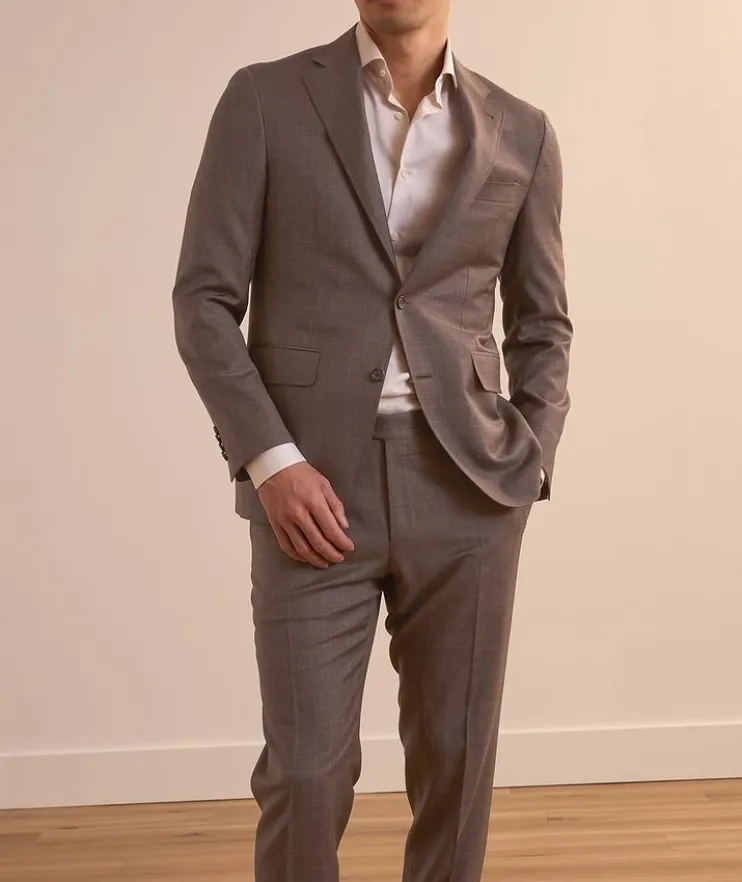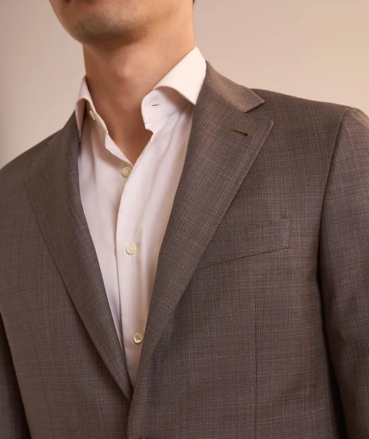 - This suit has been crafted in a regular fit, designed to sit naturally against the body.