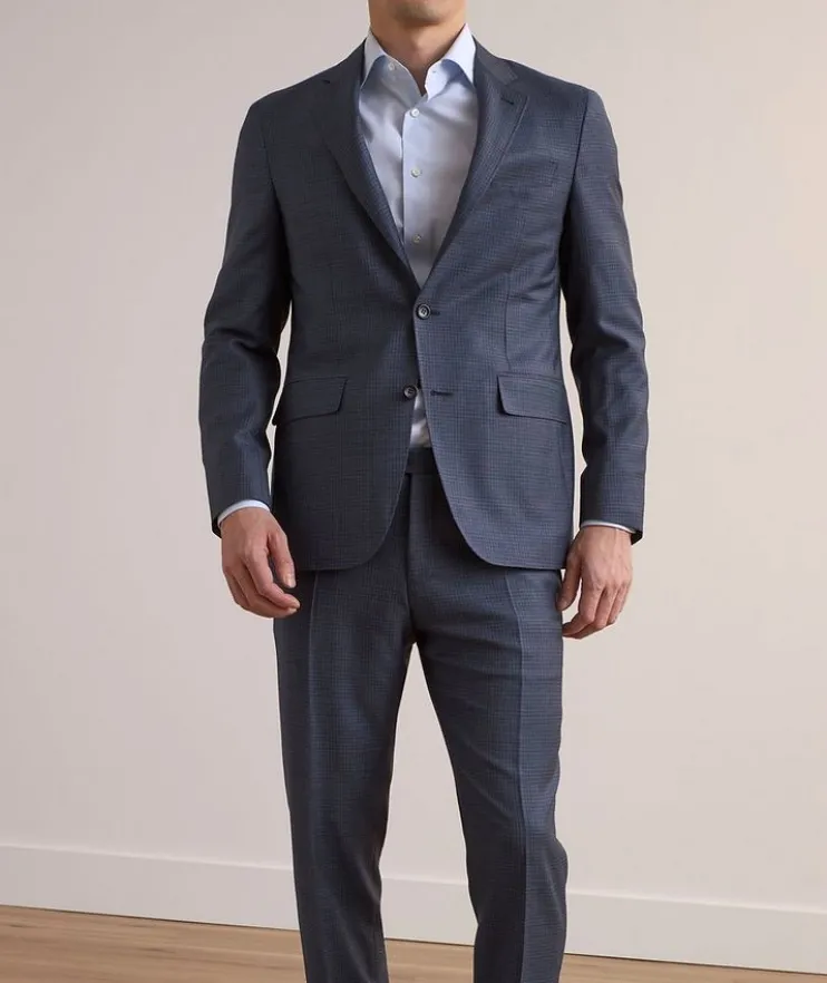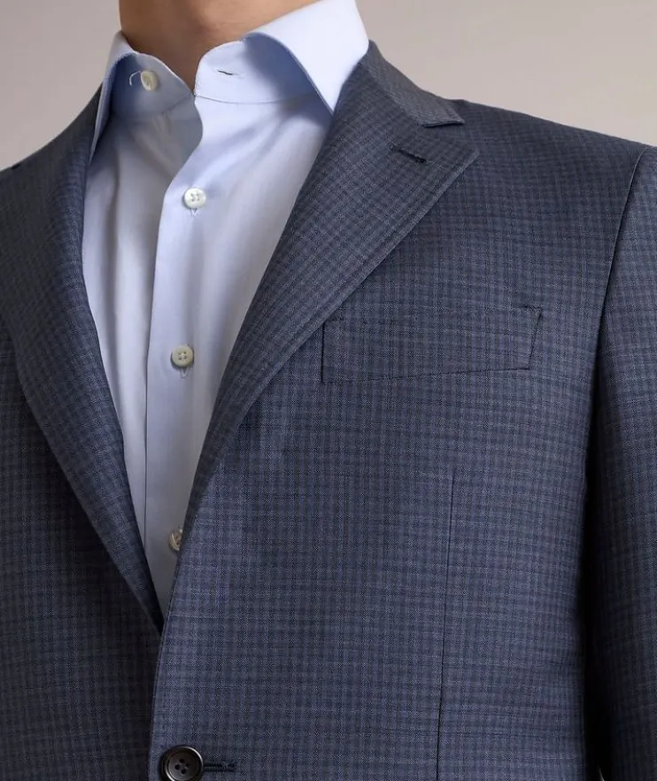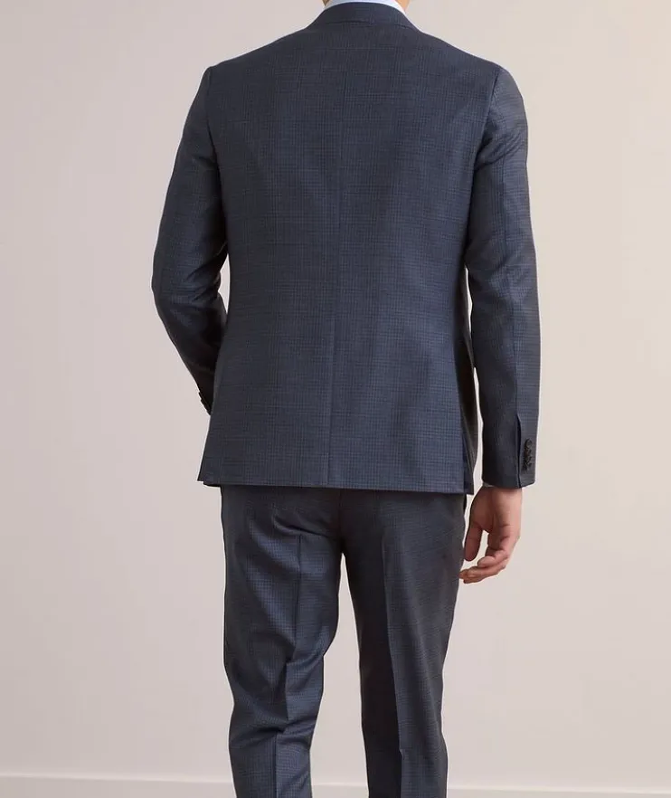 - This suit has been crafted in a slim fit, designed to sit close against the body.