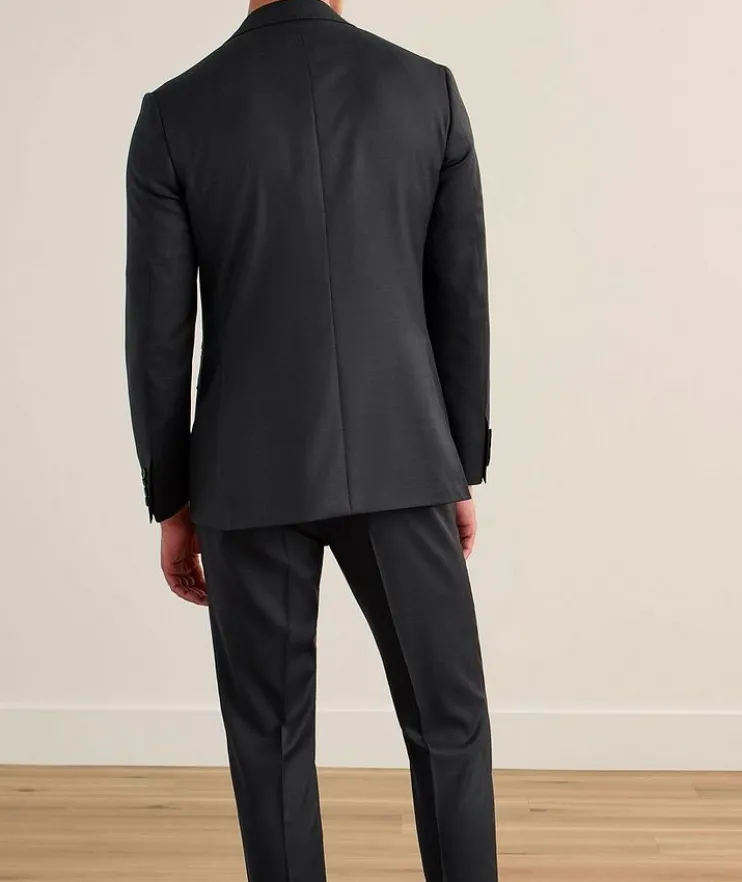 - This suit has been crafted in a slim fit, designed to sit close against the body.