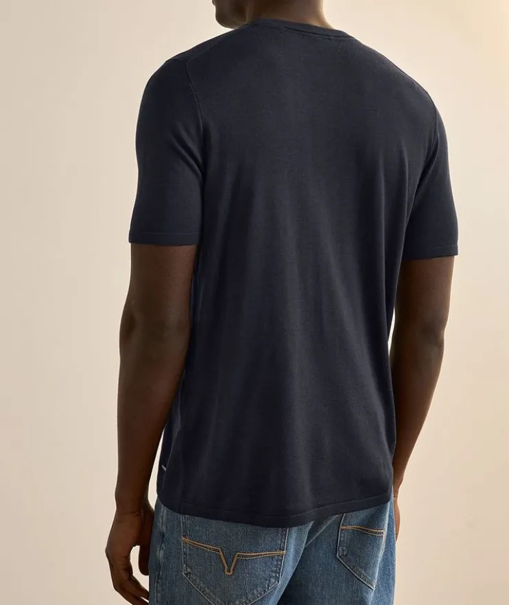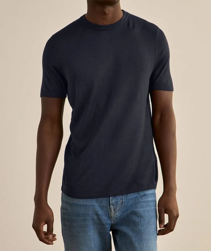 - This classic short-sleeved crewneck T-shirt is updated with knit finish to elevate a wardrobe staple.