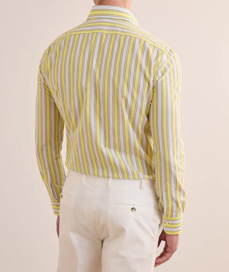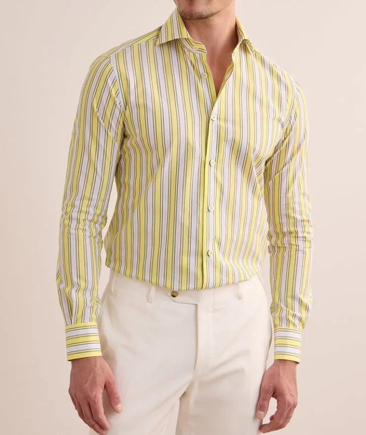 - Cut in a classic silhouette with striped detailing, this lightweight cotton sport shirt is a versatile addition to any wardrobe.
