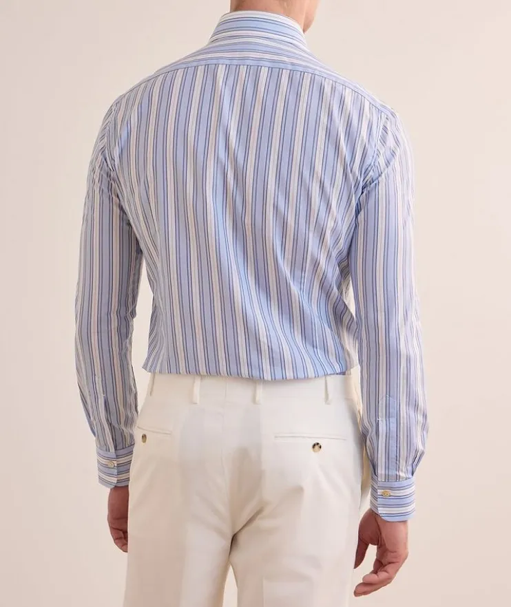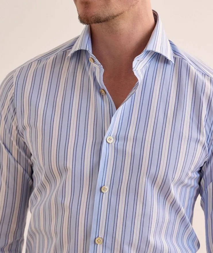 - Cut in a classic silhouette with striped detailing, this lightweight cotton sport shirt is a versatile addition to any wardrobe.