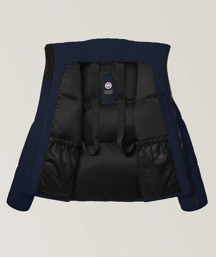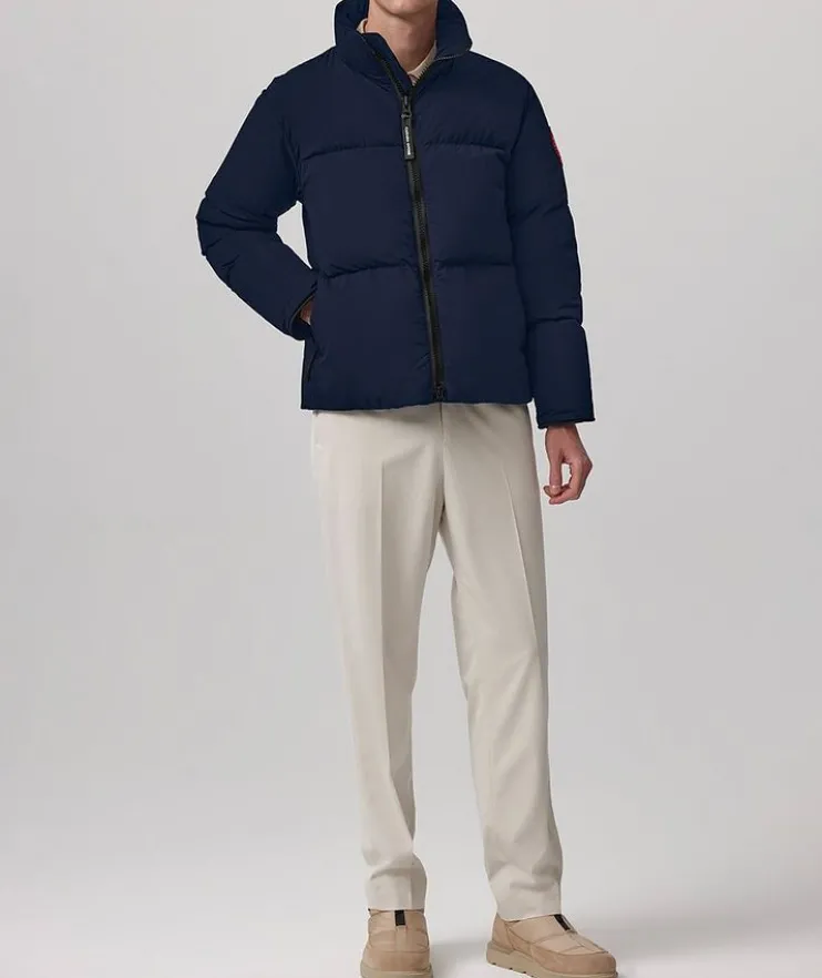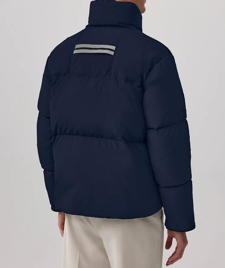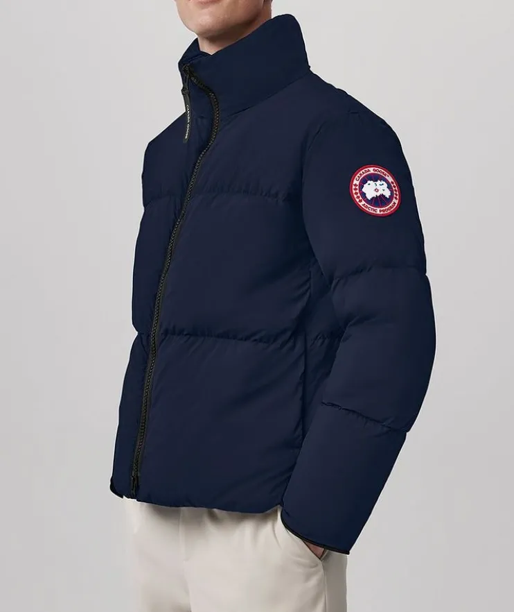 - Offered in a variety of lengths and thermal indexes, Canadas Goose’s Lawrence family offers a soft handed, lightweight feel that is easily storable on your next adventure. The Lawrence Puffer Jacket has been thoughtfully crafted with recycled Enduraluxe, a water-repellant fabric with a durable soft-to-the-touch finish, for a blend of protection and comfort. From the peaceful mountain tops to the busy city streets, complete the look with pieces from the brand’s knitwear collection to be decked out in head-to-toe lifestyle luxury.