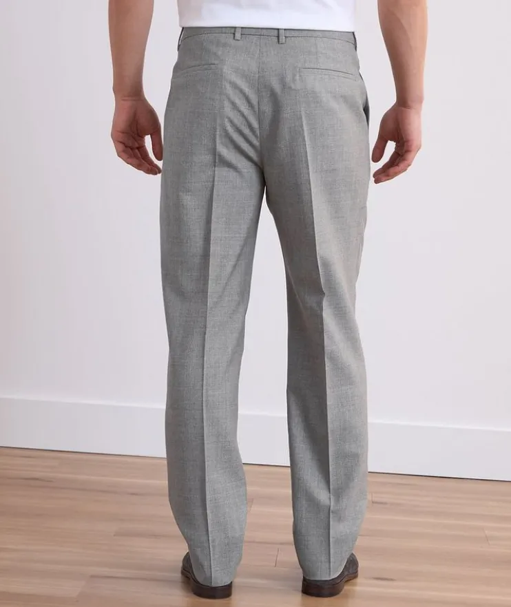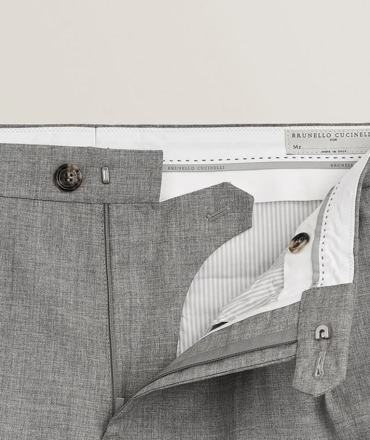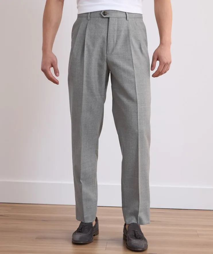 - The elegant touch of virgin wool defines the classic style of these trousers. Traditional details such as double pleats are paired with the texture of the fabric in a slightly uneven colour that reveals the subtle lines of the weave. The leisure fit offers soft proportions in the seat and a slight low-rise, while the cut remains close to the body down the leg.