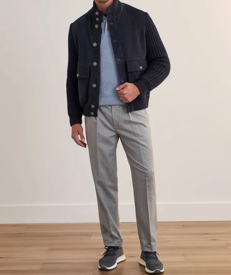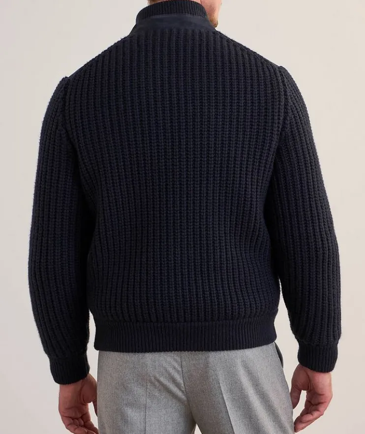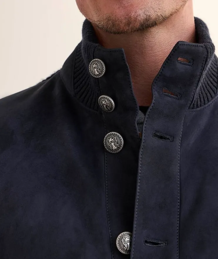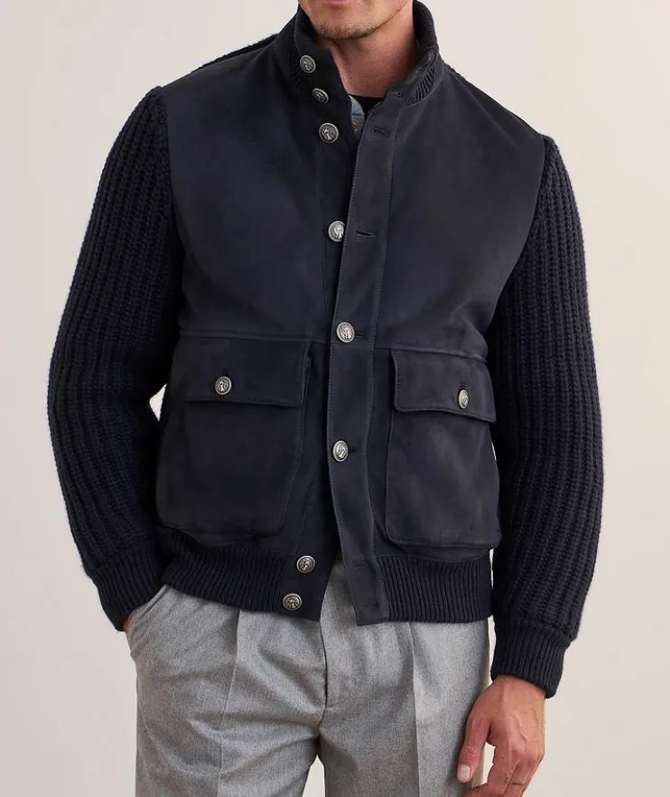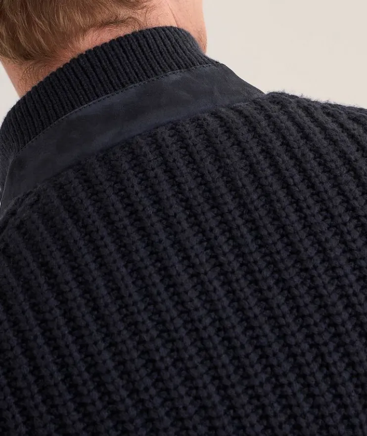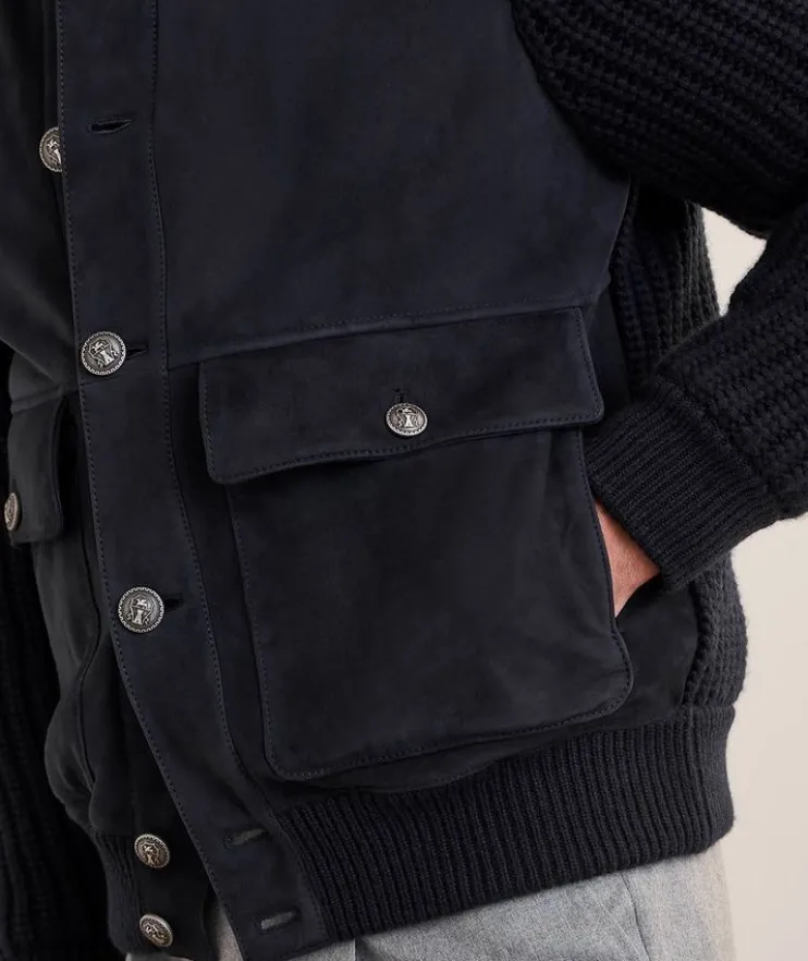 - Expertly crafted in Italy, this luxurious hybrid with real fur lining brings together the softness of a chunky cashmere shaker knit design with sumptuous suede. Soft ribbed trim, engraved buttons and front patch pockets complete the style of this garment with simple, yet refined details.
