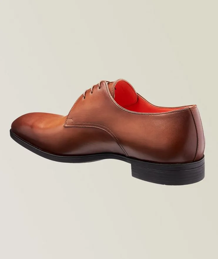 - Smart and polished for any occasion, these sleek leather derbies strike a delicate balance between sophisticated style and modern practicality. These shoes have been crafted with a wider/EE width. Consider a half-to-full size down for a standard fit.