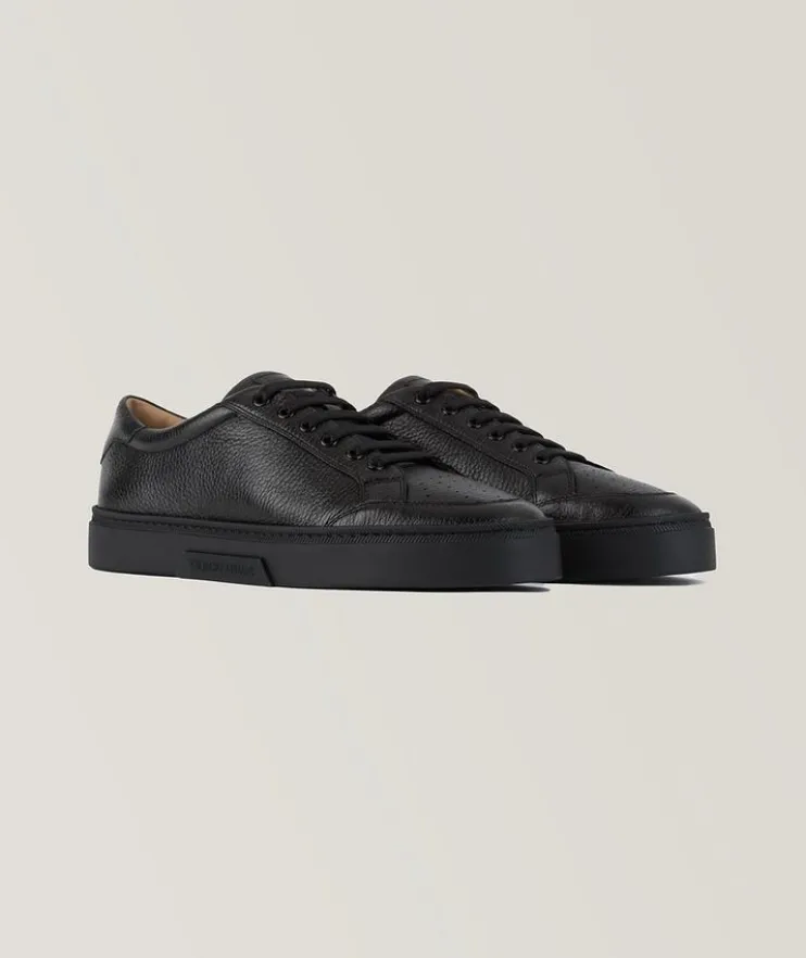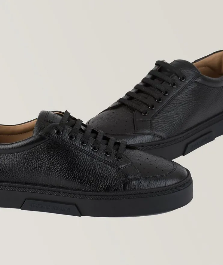 - Elevate any casual ensembles with Giorgio Armani’s sophisticated sneakers. Crafted in Italy, they’re fashioned from supple leather with thick rubber soles that provide comfort alongside a modern look. Pair these low-tops with cuffed jeans to showcase the classic design.