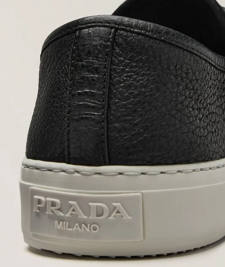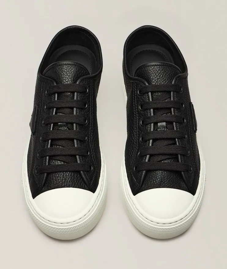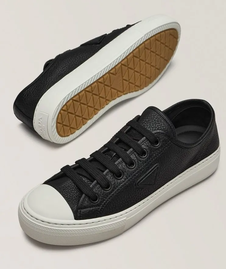 - Featuring a classic low-profile silhouette with grained leather construction and a contrasting rubber sole and cap-toe, this smart sneaker can easily be dressed up or down for a modern city look.