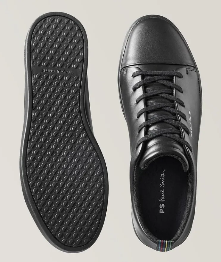 - Paul Smith designs menswear for both fashion and function, and these sneakers are a testament to the brand’s ethos. Crafted from smooth leather, the all-black style is finished with the signature multi-coloured grosgrain heel tab, and subtle logos. Pair the low-tops with denim and a solid tee for a minimalist aesthetic.