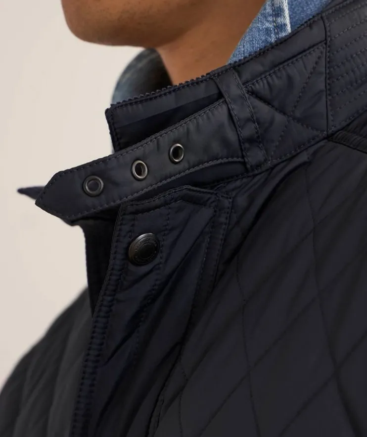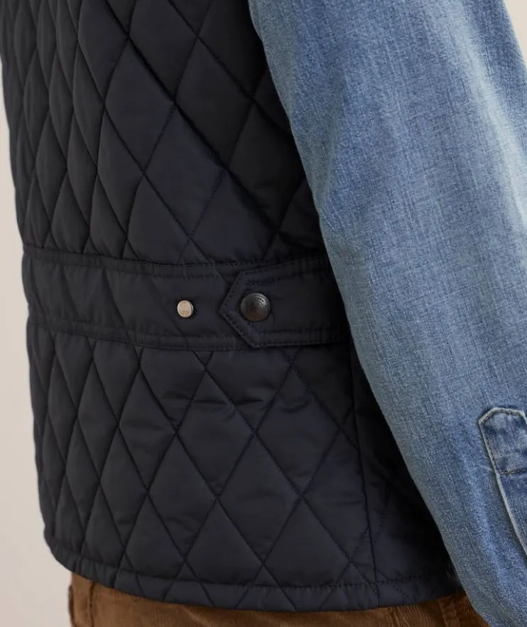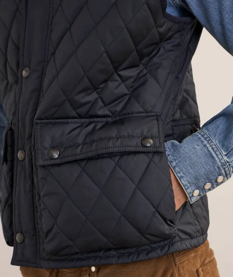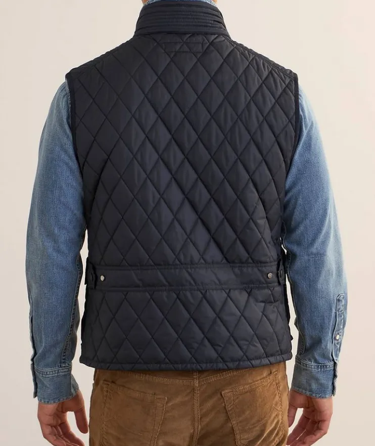 - Drawing inspiration from the classic barn coat, this nylon vest features suede trim at the armholes and a diamond quilted design. A classic layering piece in mild weather.