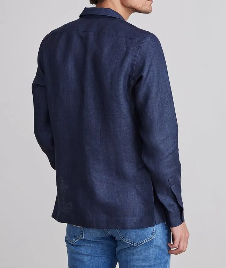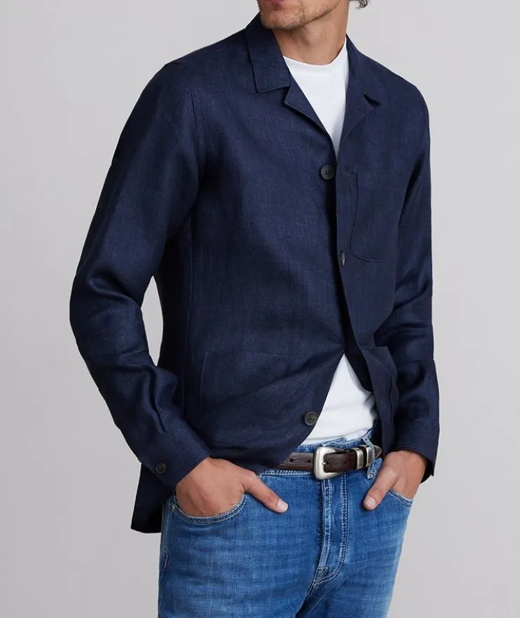 - Strike a perfect balance between tailored and casual with this functional shirt jacket. Expertly crafted from lightweight, breathable linen, this warm weather topper features a button front closure and patch pockets with a classic twill finish.