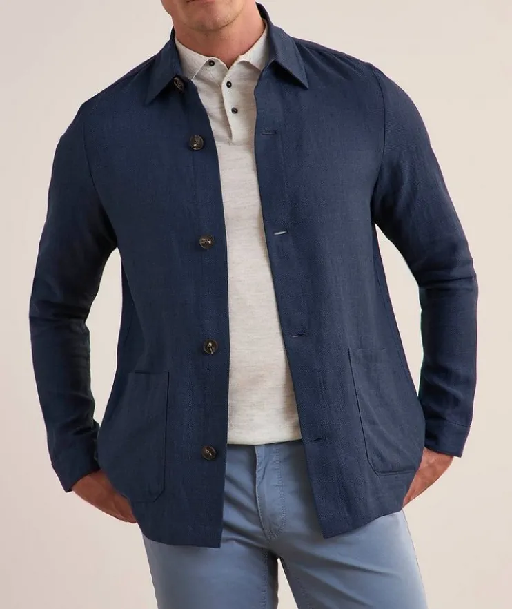 - Strike a perfect balance between tailored and casual with this functional shirt jacket. Expertly crafted in Italy from lightweight and breathable linen and wool blend, this versatile topper features a button front closure and patch pockets for an elevated take on casual sophistication.