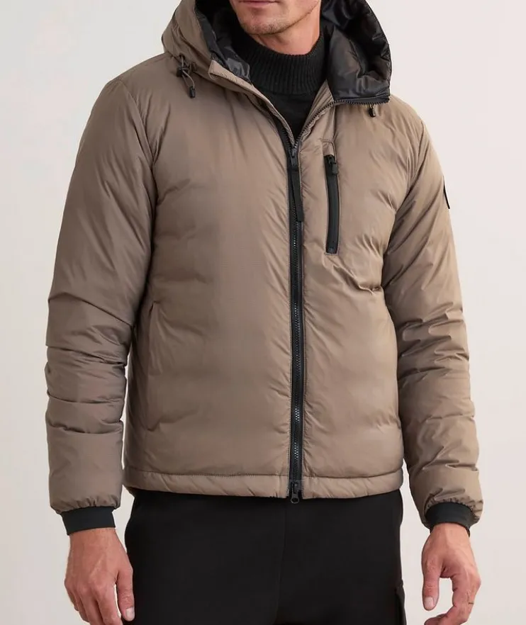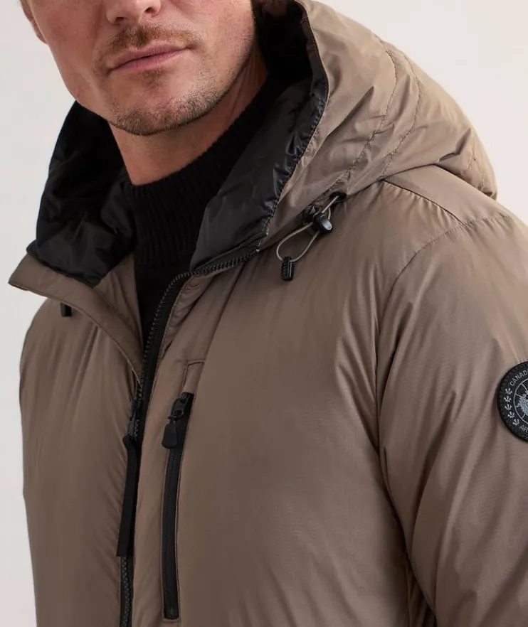 - From the Black Label Collection. Crafted from a windproof technical fabric with warm down filling, this hooded jacket is ideal for mid-season dressing and easily packs down for travel.