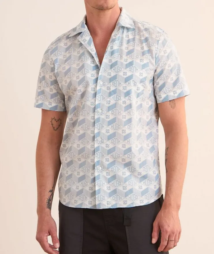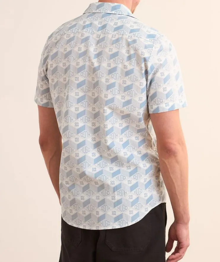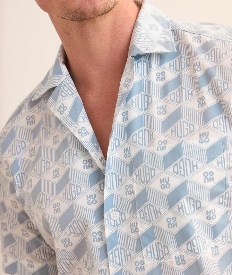 - Cut from smooth, breathable cotton in a regular straight fit, this short-sleeved camp shirt adds a refined element to casual dressing. Finished in a geometric logo graphic print throughout for a laidback look.