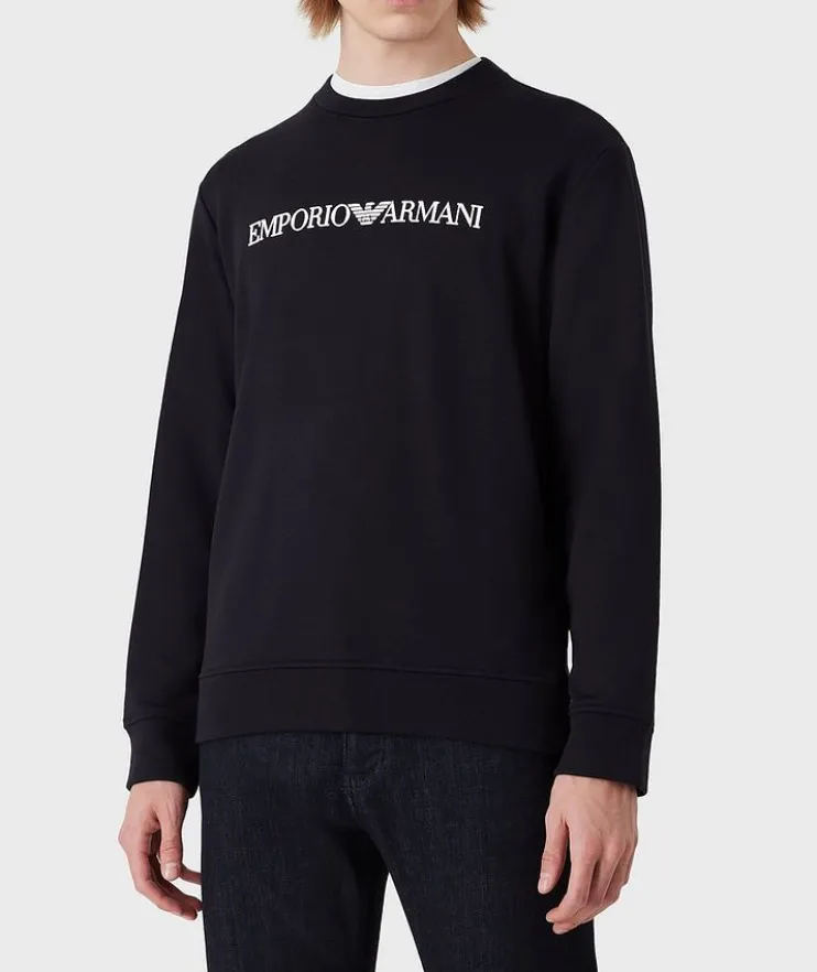 - Practical with an urban attitude: this Emporio Armani sweatshirt is easy-to-wear and perfect for any season. Crafted from ultra-soft cotton and modal, it stands out thanks to an oversized eagle logo across the chest. Try pairing it with your favourite denim and leather sneakers for a laidback look.