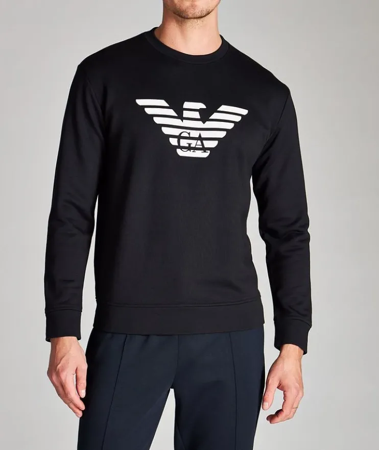 - Practical with an urban attitude: this Emporio Armani sweatshirt is easy-to-wear and perfect for any season. Crafted from ultra-soft cotton and modal, it stands out thanks to an oversized eagle logo across the chest. Try pairing it with your favourite denim and leather sneakers for a laidback look.