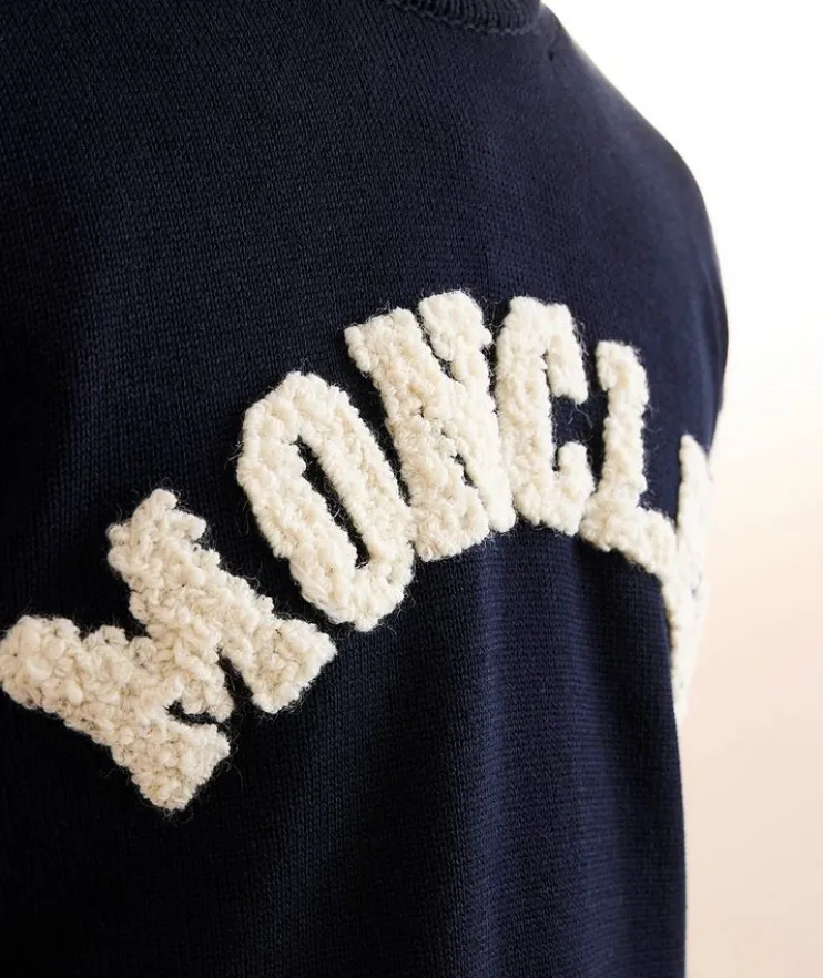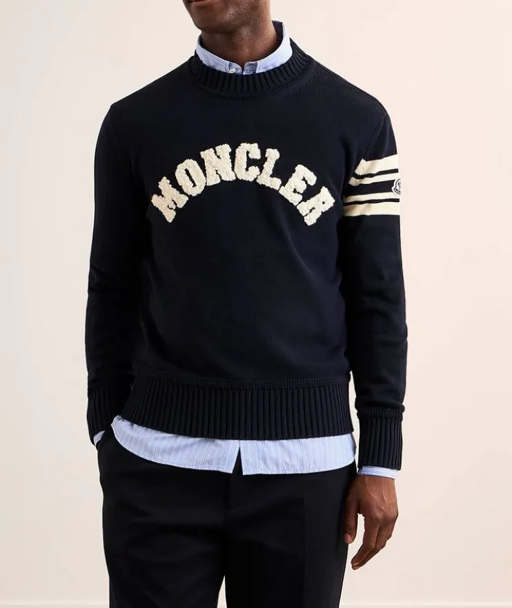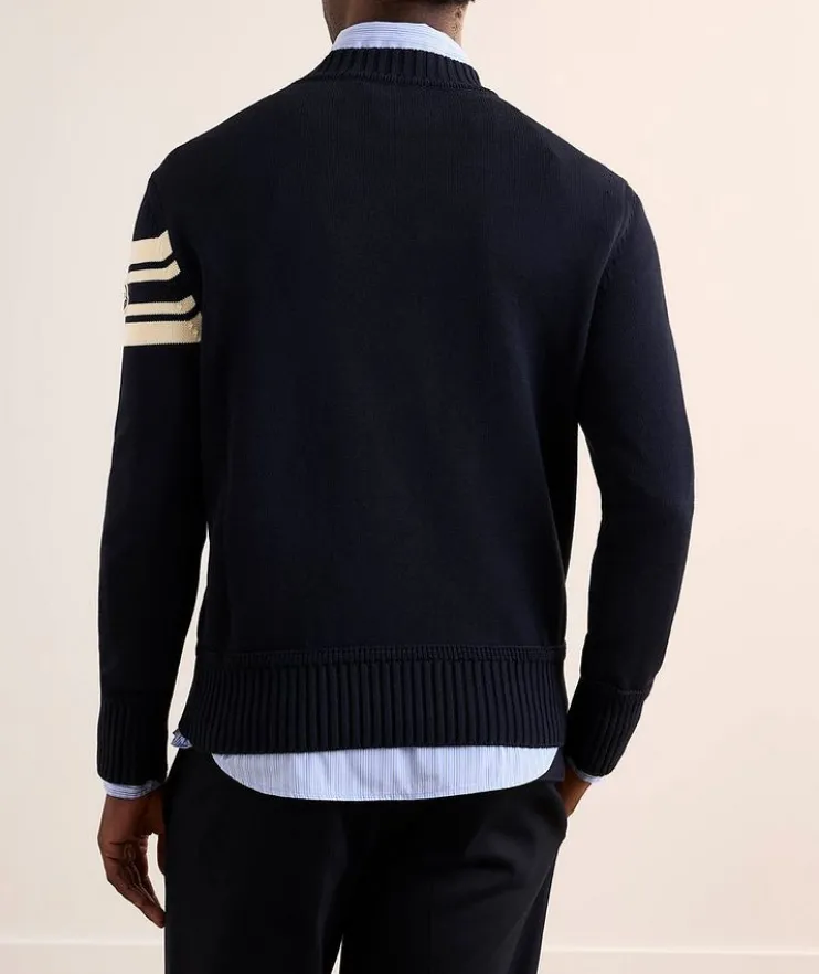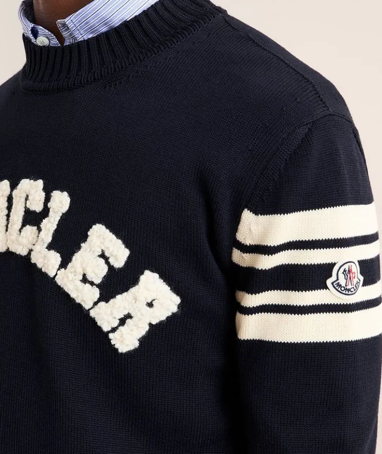 - This mid-weight crewneck sweater is crafted from breathable cotton and takes inspiration from vintage collegiate style with a textured logo design and striped detailing at the sleeve.